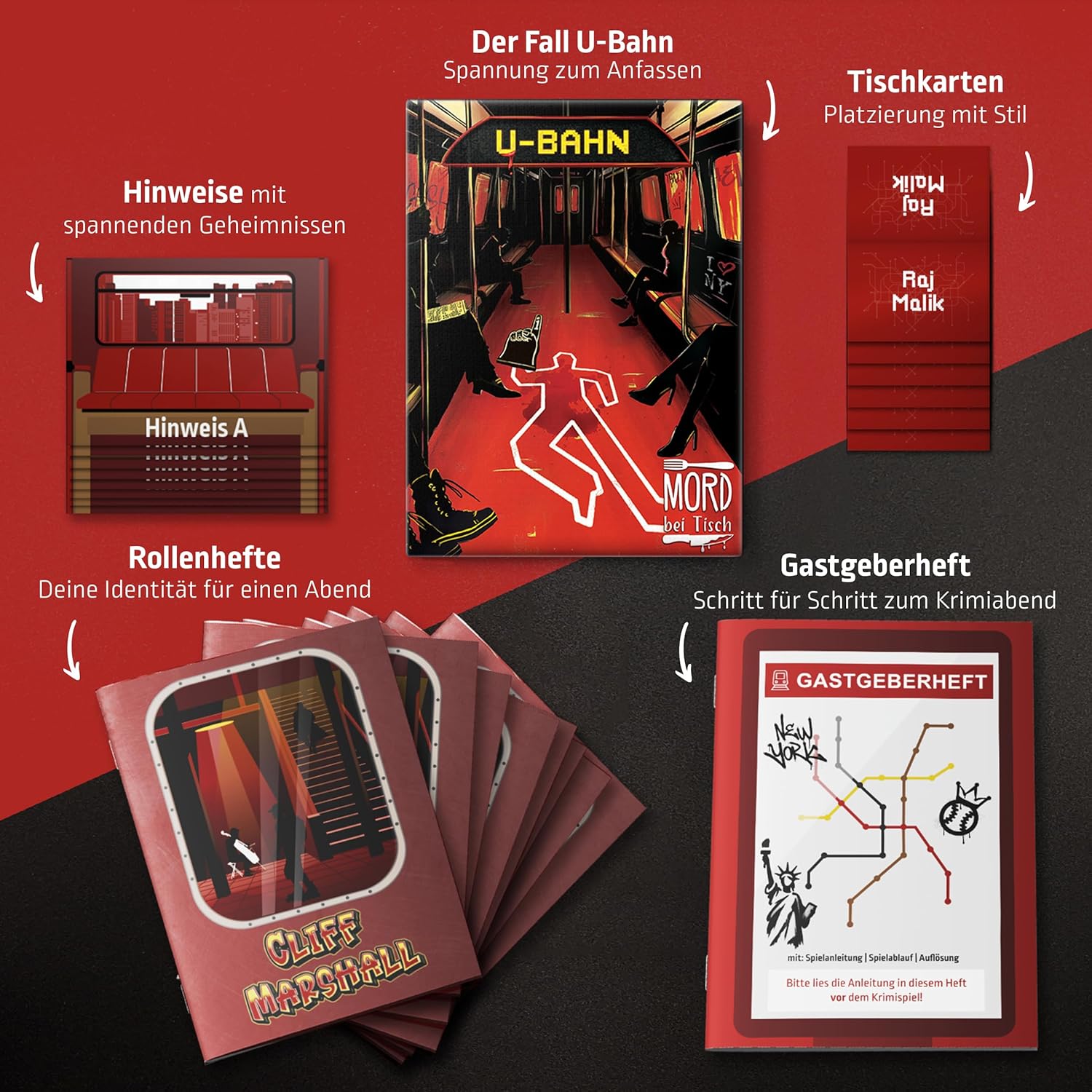 MORD bei Tisch Krimidinner für Zuhause - 4 bis 6 Personen - Der U-Bahn Fall - Das Krimi Spiel ab 16