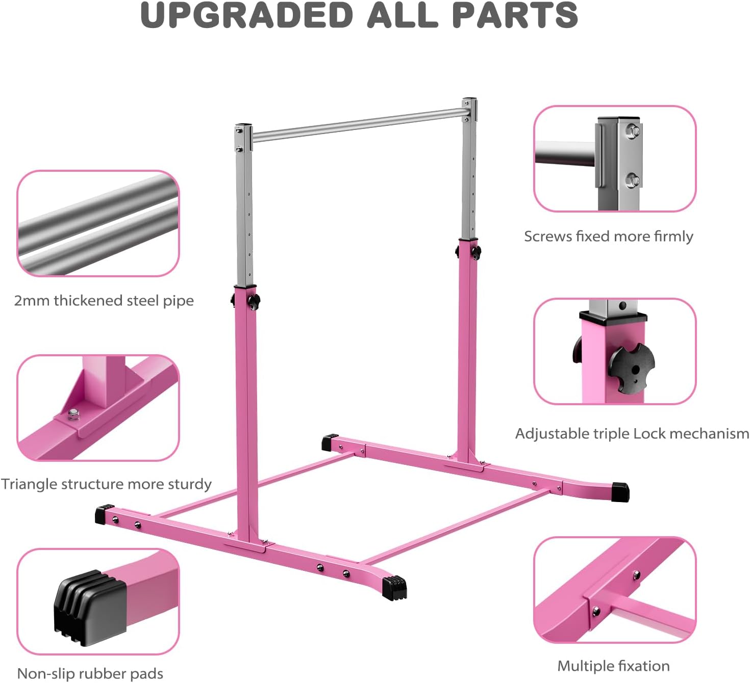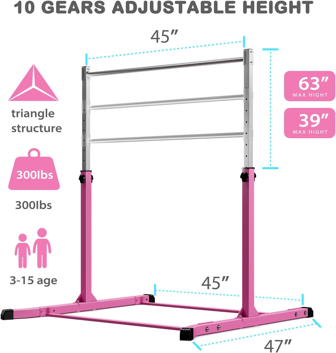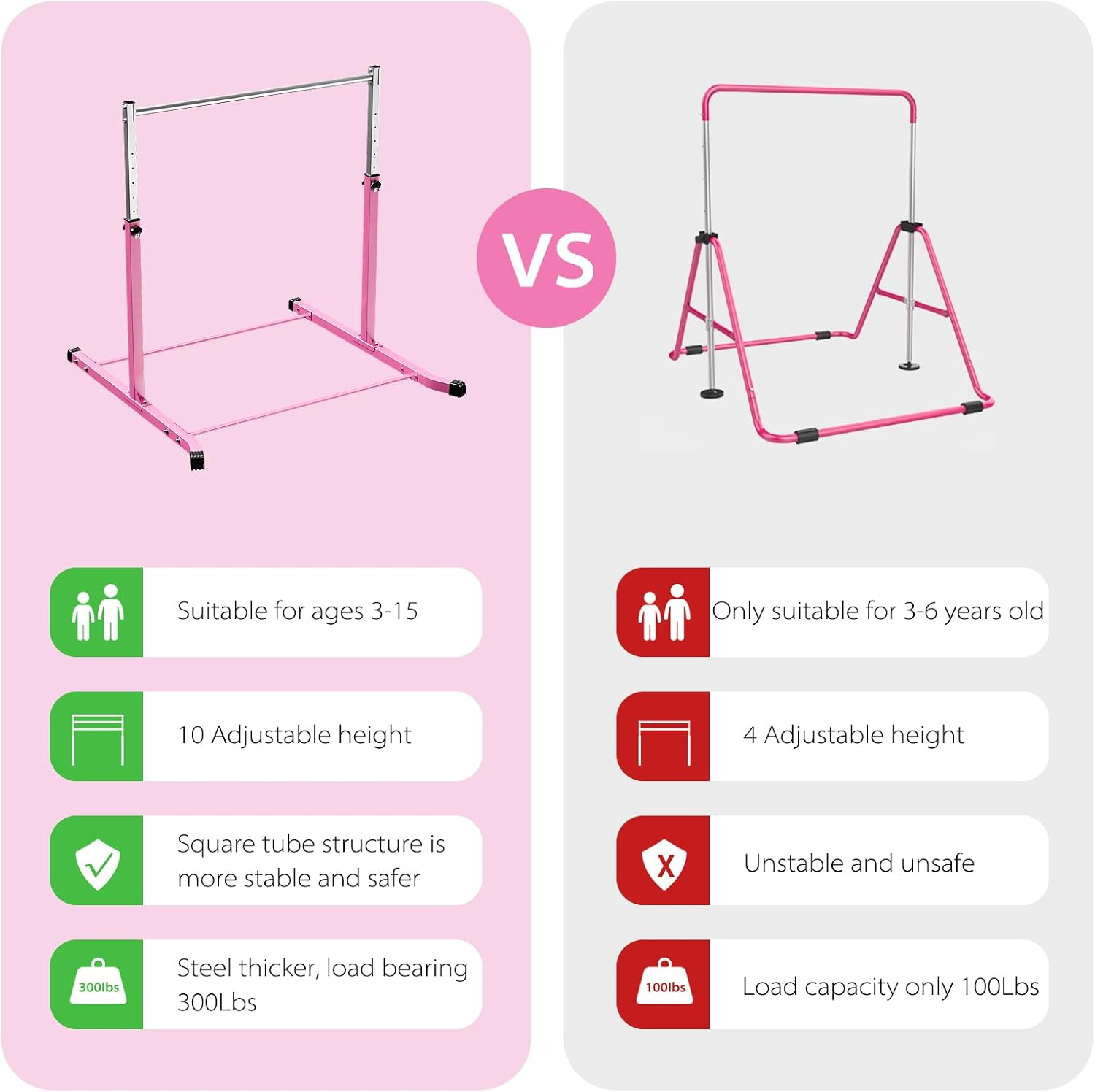 - Verstellbare Höhe: Die Gymnastikstange kann leicht nach oben oder unten in der Höhe verstellt werden, von 90 cm bis 152 cm mit 10 Stufen, um Ihre Kinder während des Wachstums unterzubringen.