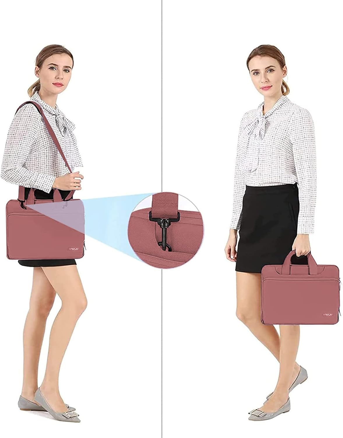 - Sie können es als Umhängetasche, Aktentasche und Ärmeltasche verwenden, wie Sie möchten. Der hintere Gepäckriemen ermöglicht es der Tasche, über den Gepäckschlauch zu gleiten, die Tasche an Ort und Stelle zu sichern, bietet eine bequeme