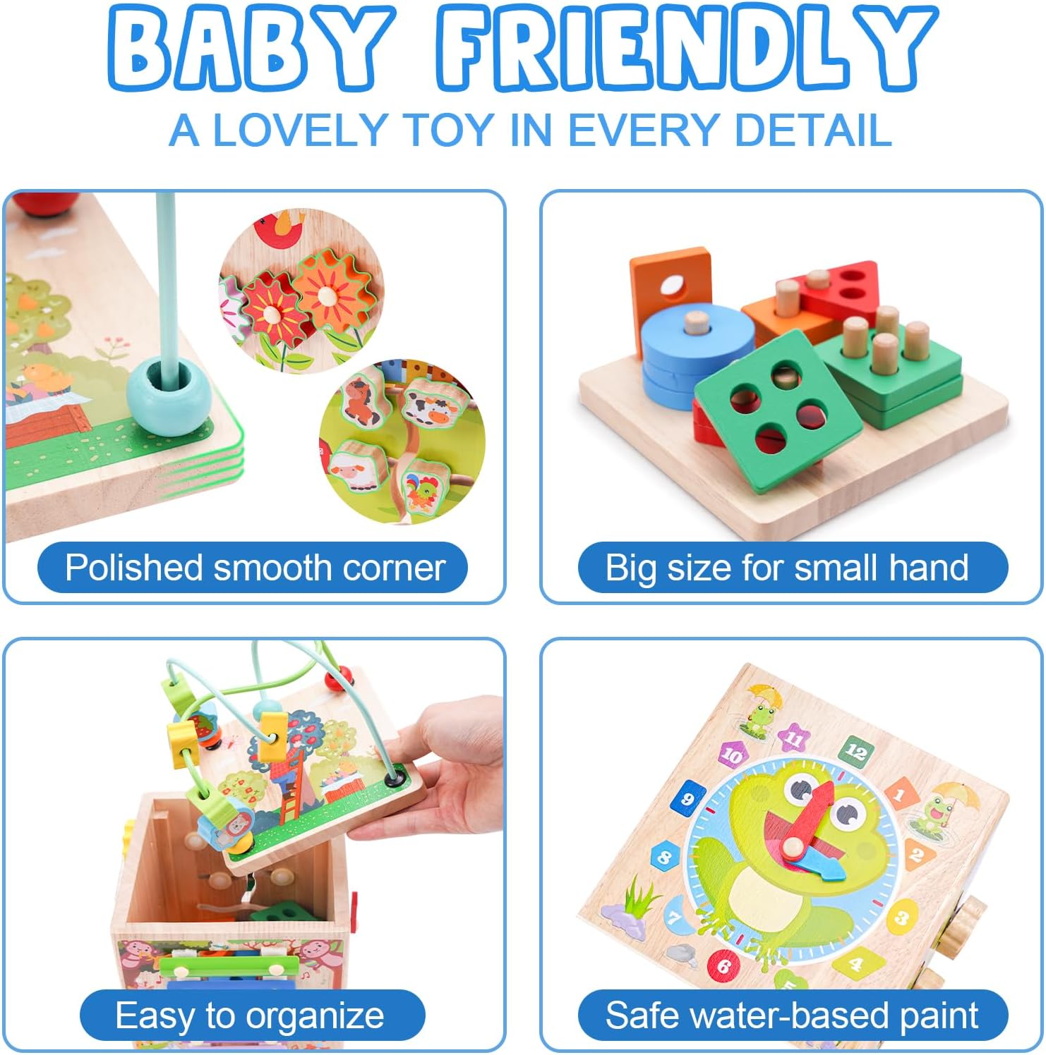 - 【Sicherheit steht an erster Stelle】 Die Sicherheit Ihres Babys hat für uns oberste Priorität! Dieser Aktivitätswürfel ist aus Naturkautschukholz gefertigt, verfügt über abgerundete Kanten und eine glatte, ungiftige Farbe auf Wasserbasis, die