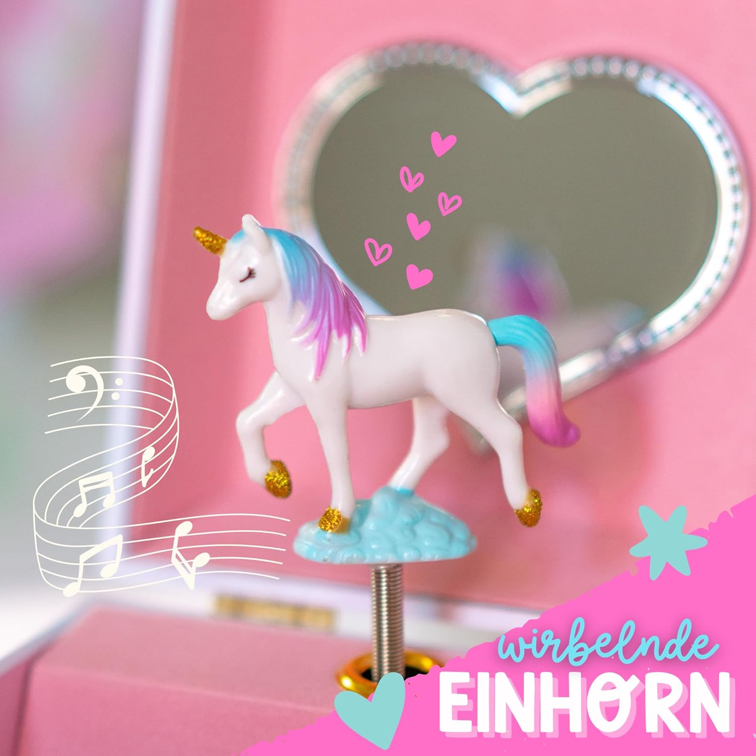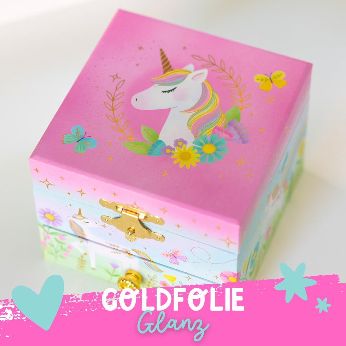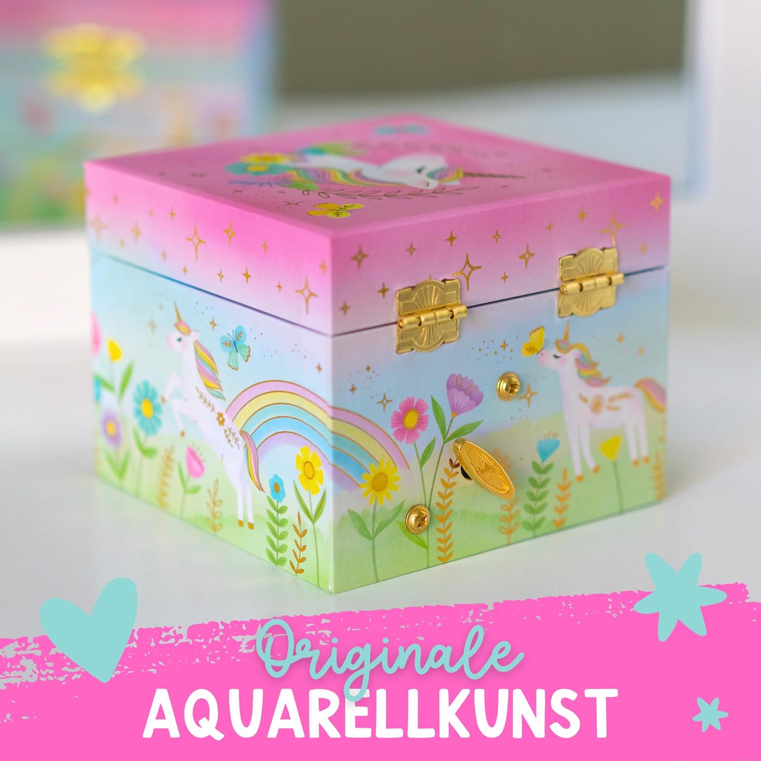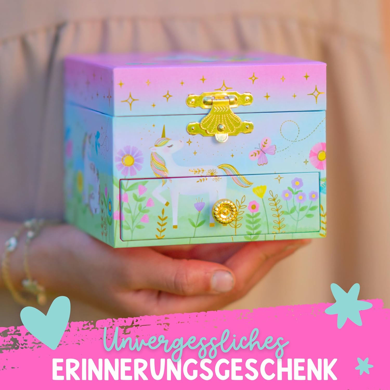 - Einhorn-Schmuckkästchen für Mädchen – Dieses musikalische Schmuckkästchen für Mädchen weckt Ehrfurcht und Staunen in fantasievollen Herzen und zaubert jedem kleinen Mädchen ein strahlendes Lächeln ins Gesicht. Sieh zu, wie sie in die anmutig