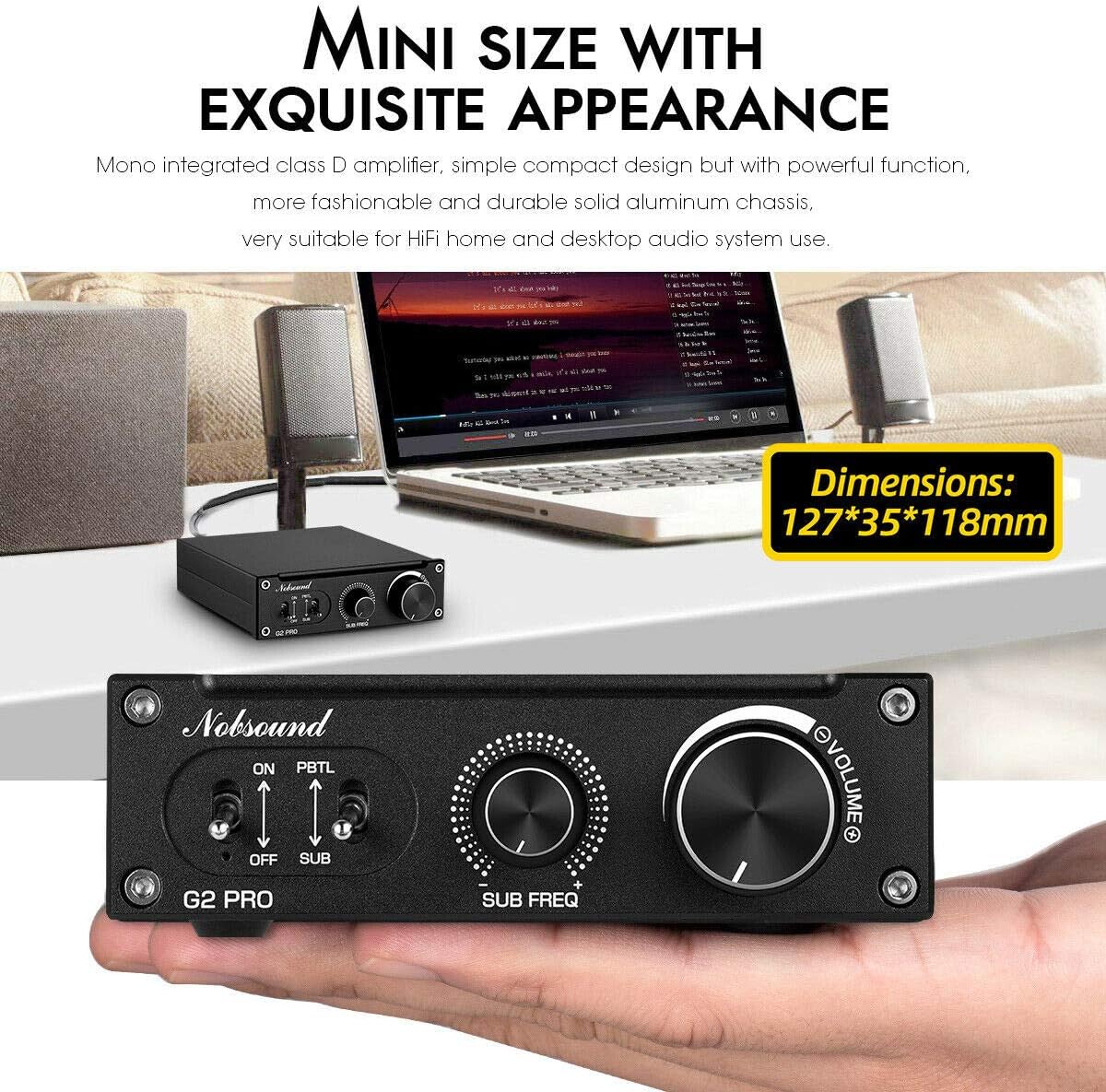 - Kompakte Bauform mit exquisitem Aussehen: Mono-integrierter Class-D-Verstärker, einfach und kompakt, aber mit mächtiger Funktion, gehäuse aus robustem Aluminium, ideal für HiFi Heim- und Desktop-Audiosysteme.