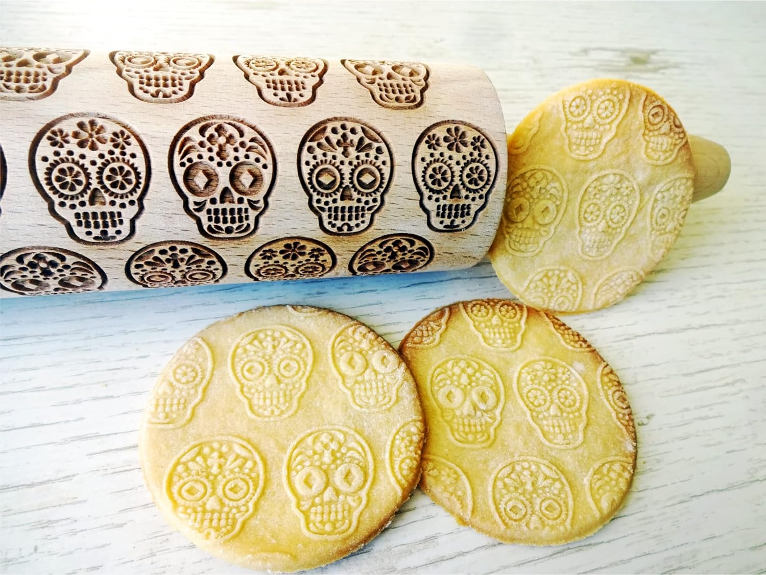 - Die Lasergravur wird auf dem Nudelholz angebracht und hinterlässt einen deutlichen Abdruck auf dem bearbeiteten Teig.