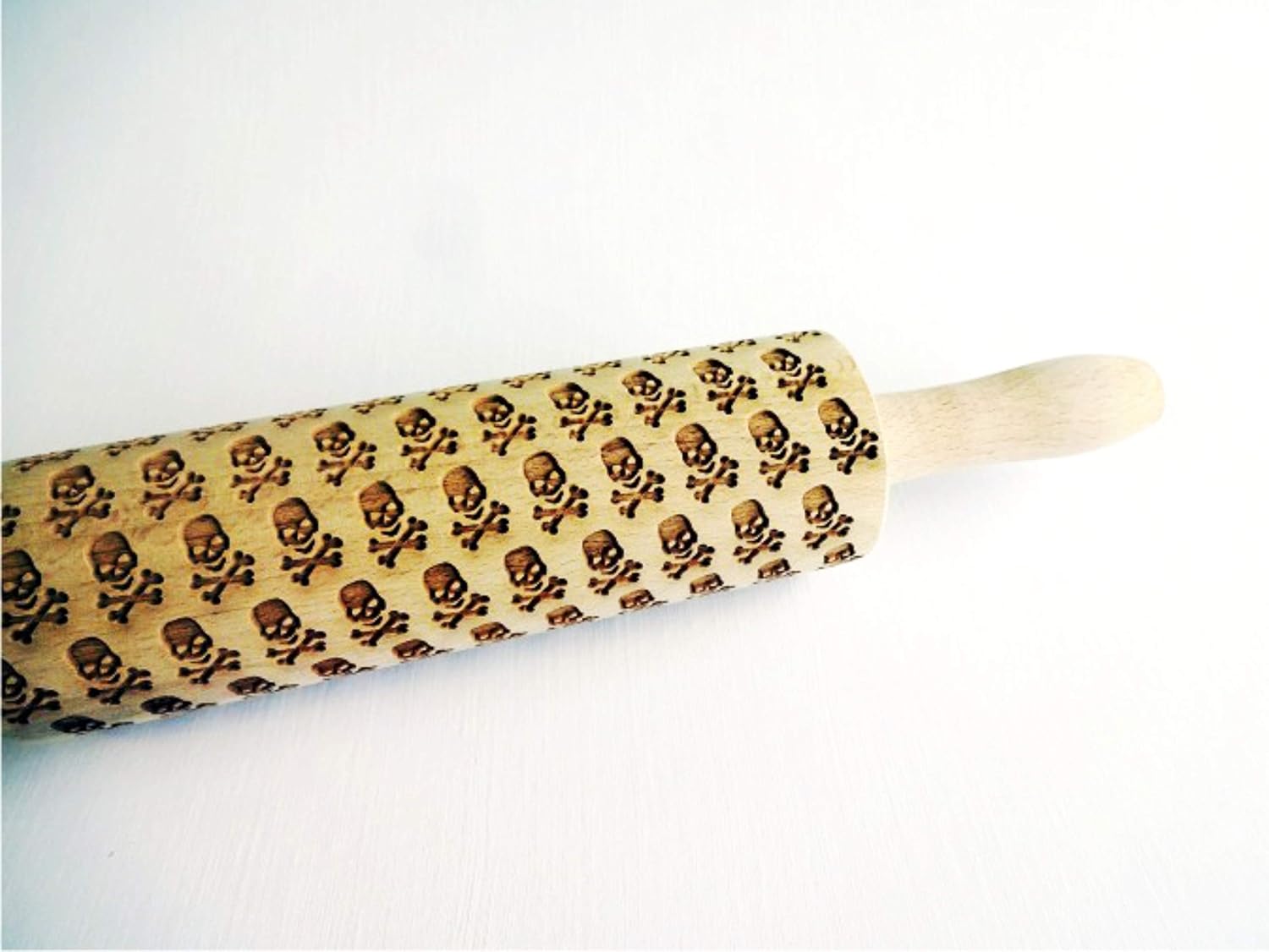 - Die Lasergravur wird auf dem Nudelholz angebracht und hinterlässt einen deutlichen Abdruck auf dem bearbeiteten Teig.