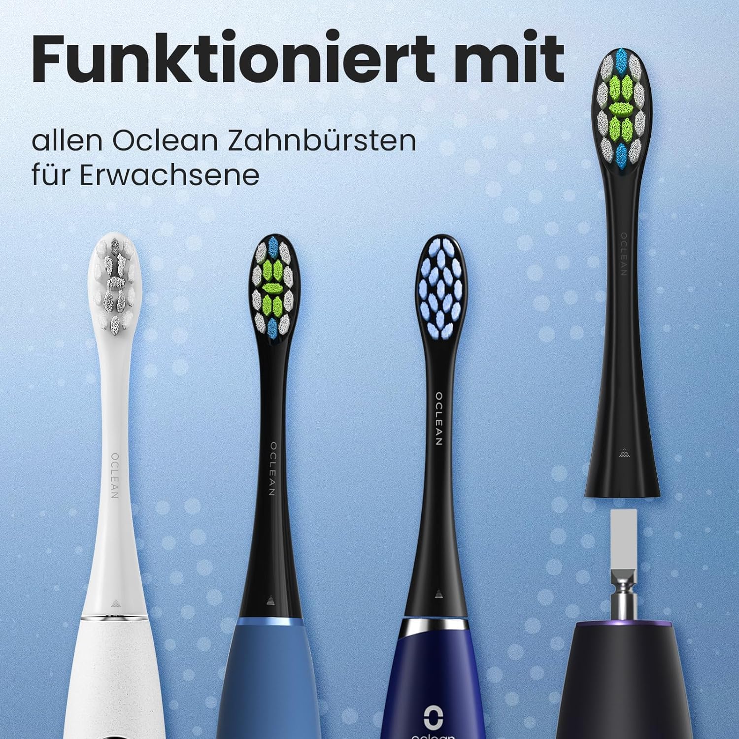 - Oclean NUR: Dieser professionelle Bürstenkopf hat steifere Borsten und ist besser für Menschen geeignet, die auf der Suche nach Reinigungskraft sind. Original Oclean Ersatzbürstenköpfe sind nur kompatibel mit allen Oclean elektrischen Zahnbürsten