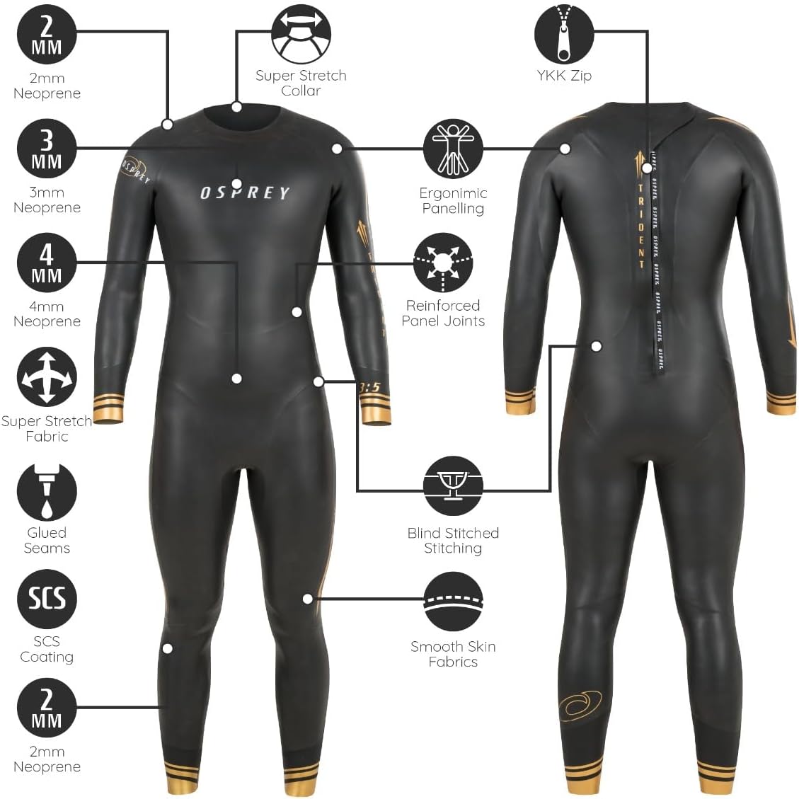 - YKK-Reissverschlüsse: Der Dreizack ist aussergewöhnlich einfach anzuziehen und schnell zu entfernen, nachdem er aus dem Wasser kommt, perfekt für Hochleistungssportler