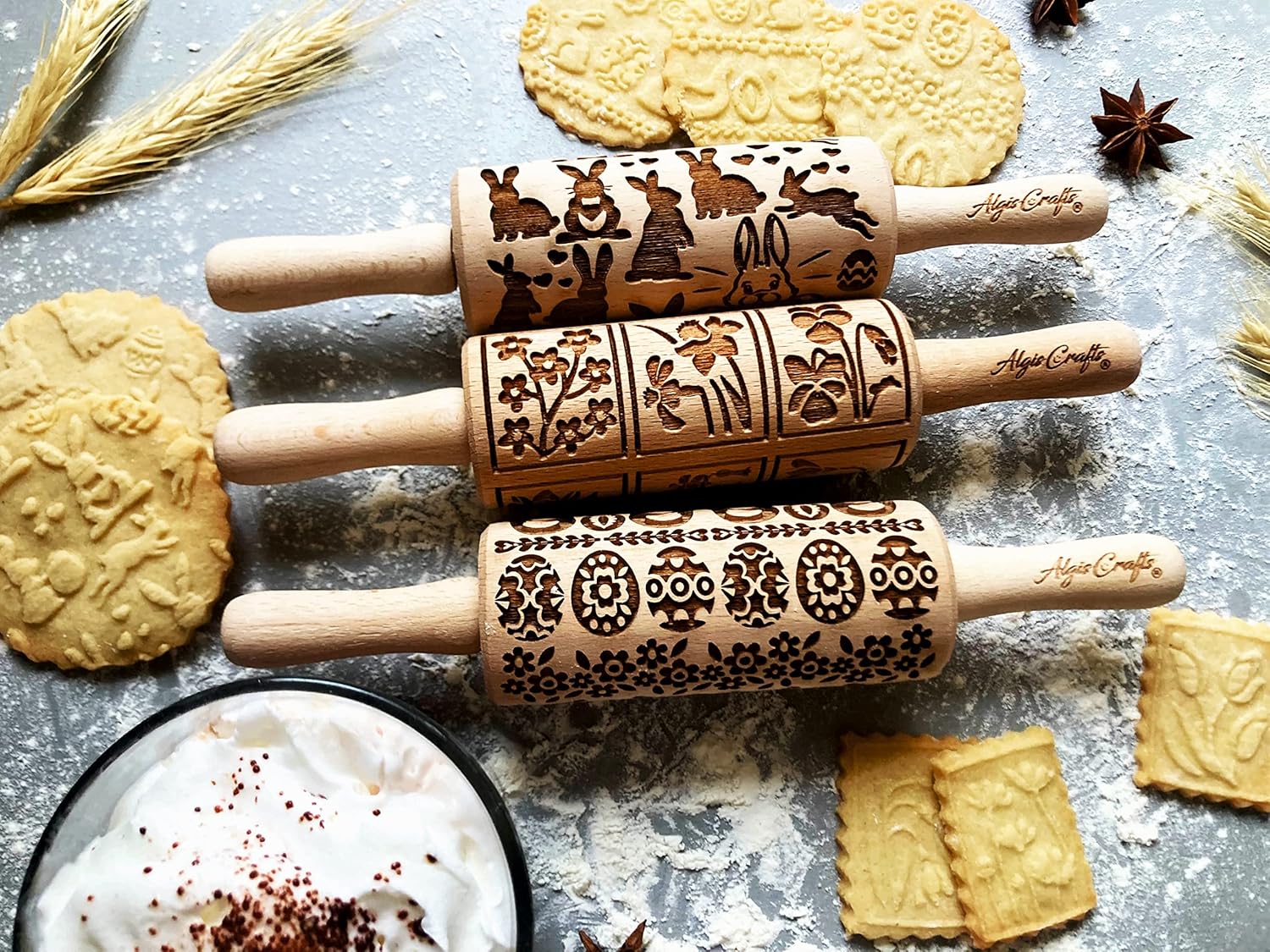 - Lasergravur wird auf dem Nudelholz angebracht, und hinterlässt einen deutlichen Abdruck auf dem bearbeiteten Teig. Das Nudelholz wird mit den Händen poliert und mit einem Holzschutz imprägniert, der aus natürlichem Leinöl.