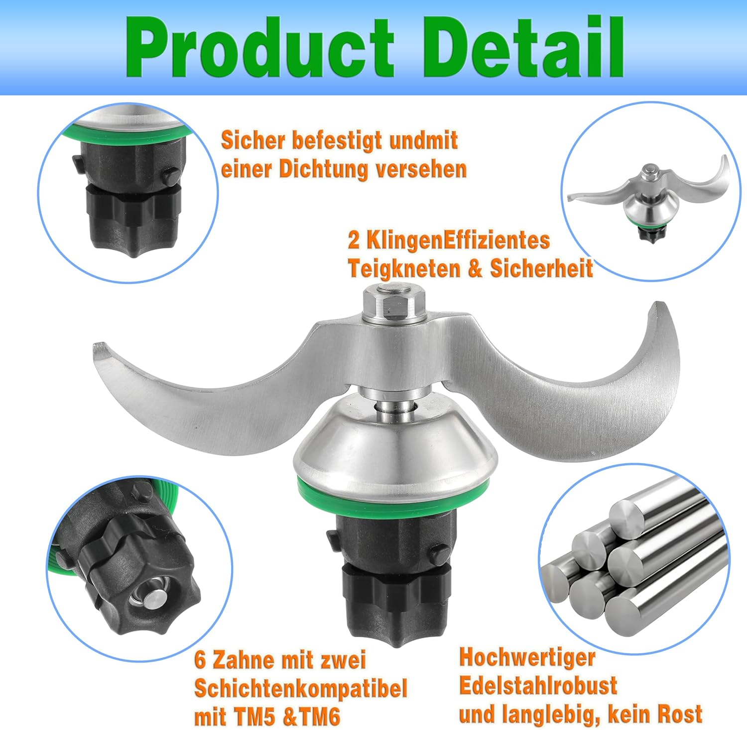 - 【Kompatibel mit TM5/TM6】 Unser messer ist perfekt kompatibel mit den Vorwerk Thermomix TM5 und TM6 Modellen. Diese hohe Kompatibilität ermöglicht eine einfache Installation indem Sie einfach das originale Messerset entfernen und durch unser neues