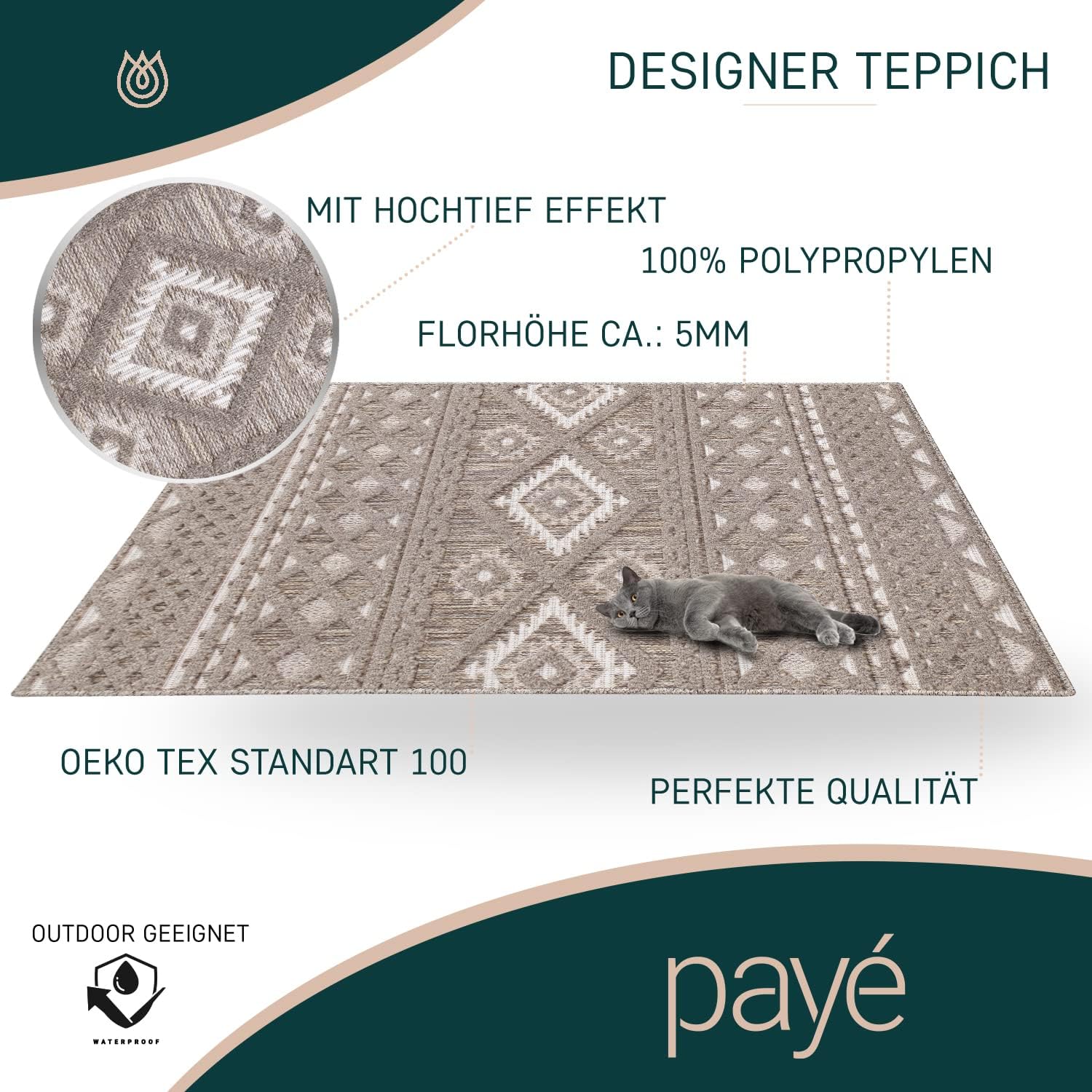 - Wahrer Allrounder! Der wetterfeste Outdoor-Teppich überzeugt mit vielseitiger Verwendbarkeit.
