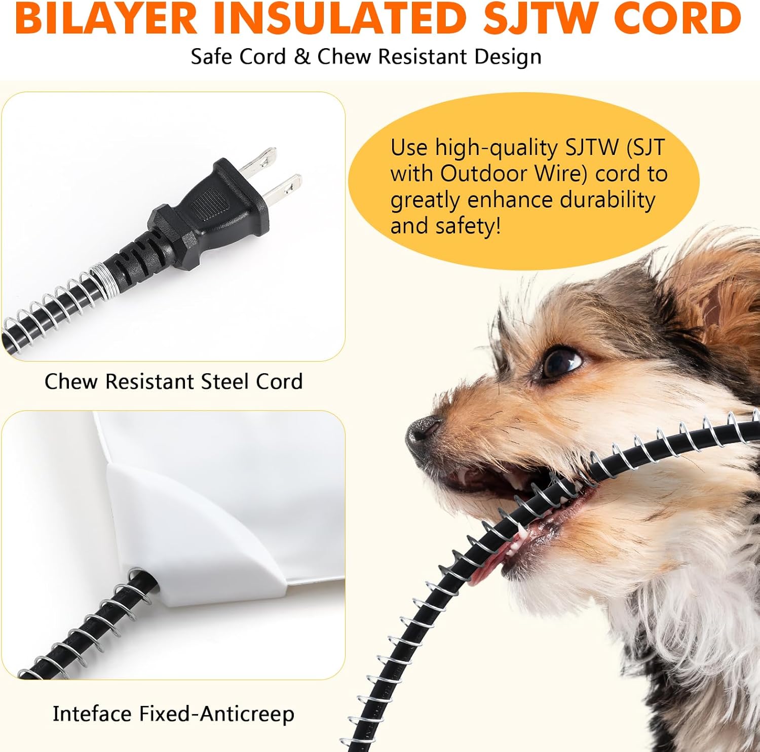 - Robust und Langlebig, Ideal für Haustiere - Die elektrischen Leitungen des Heizkissens sind durch einen speziellen, bissfesten Metallschlauch geschützt, der in mehreren Schichten ummantelt ist. Dies verhindert, dass Ihr Haustier das Kabel durchkauen