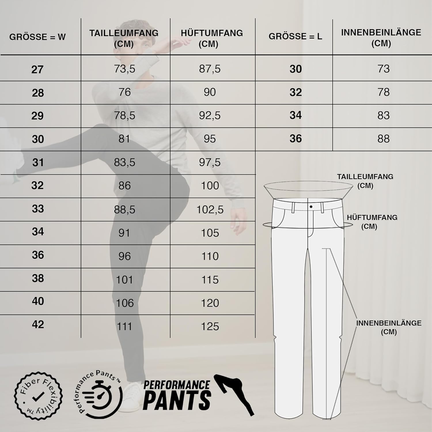 - ACHTUNG – Wir empfehlen, mindestens eine Bundweite grösser zu wählen, als Sie normalerweise tragen, da unsere Performance Pants chino hose herren slim fit aufgrund des Fiber FlexibilityGewebes tendenziell kleiner ausfallen.