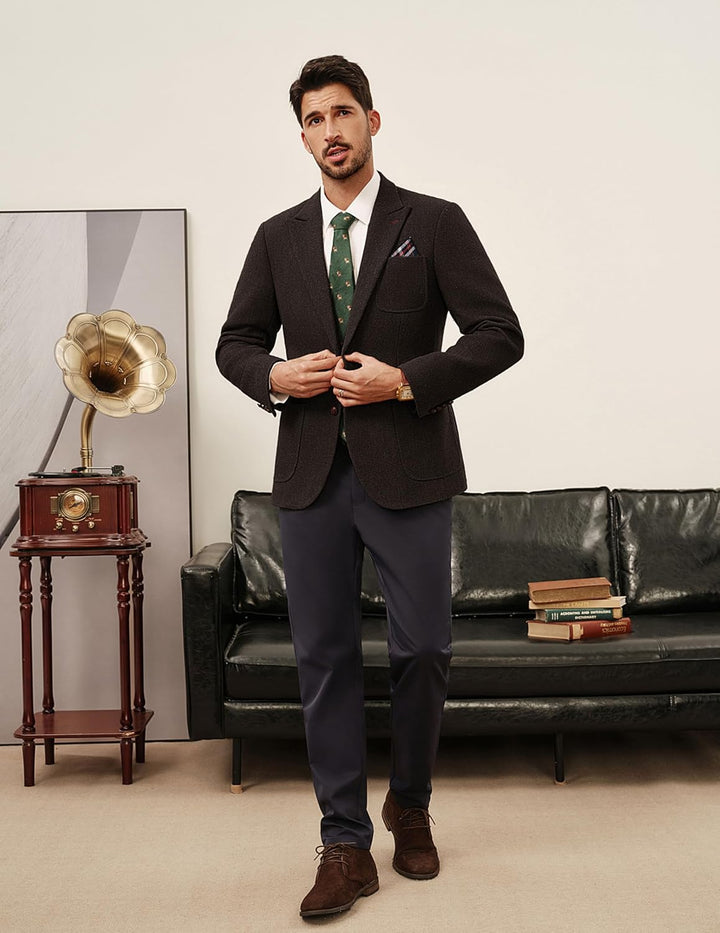 - Hochwertiger Stoff: Sakko für Herren besteht aus einer hochwertigen Wollmischung, die dick und strukturiert ist und hervorragende Wärme und Wärme bietet, perfekt für Herbst und Winter. Der Stoff zeichnet sich durch sichtbare Textur und