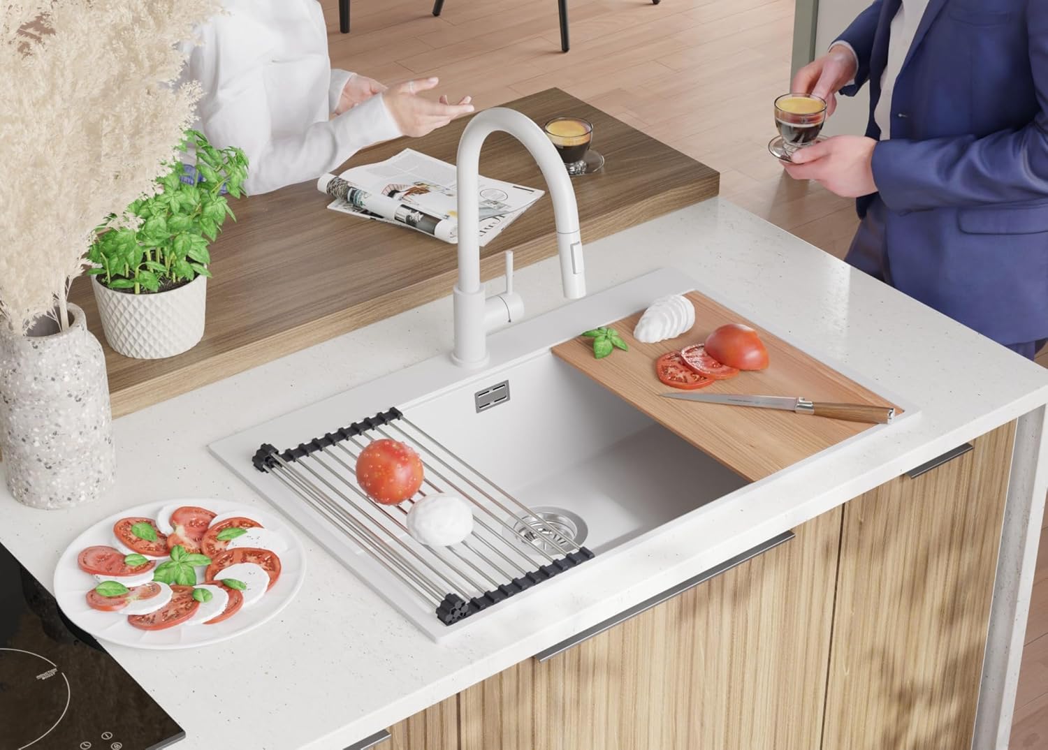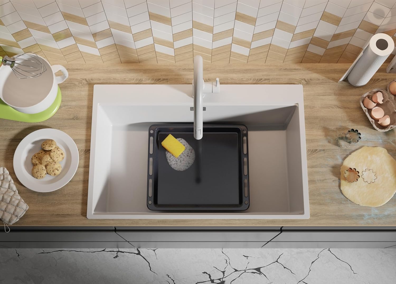 - 🛠️ MULTIFUNKTIONALE ARBEITSSTATION - Das Spülbecken verfügt über einen speziellen Rand, auf dem Sie zusätzliche, speziell entwickelte Zubehör zur Spüle wie einen aufrollbaren Abtropffläche, ein Schneidebrett oder eine Abtropfschale platzieren