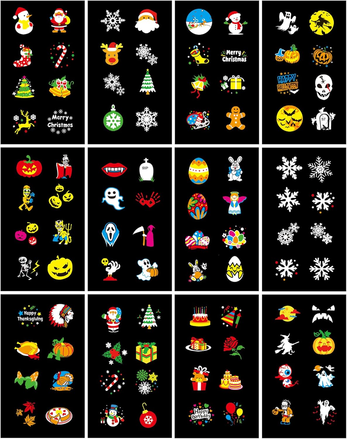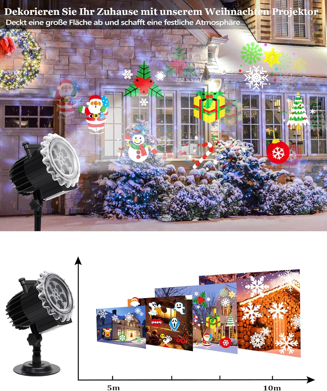 - Perfekt Projektor Weihnachten Deko:Dieser weihnachten LED projektorlampe bieten Sie eine romantische Atmosphäre. Er verfügt über 12 Folien: Herz, Thanksgiving, Geburtstag, Halloween Geist, Kürbis, Schneeflocke, Weihnachtsmann, Weihnachtsbaum,