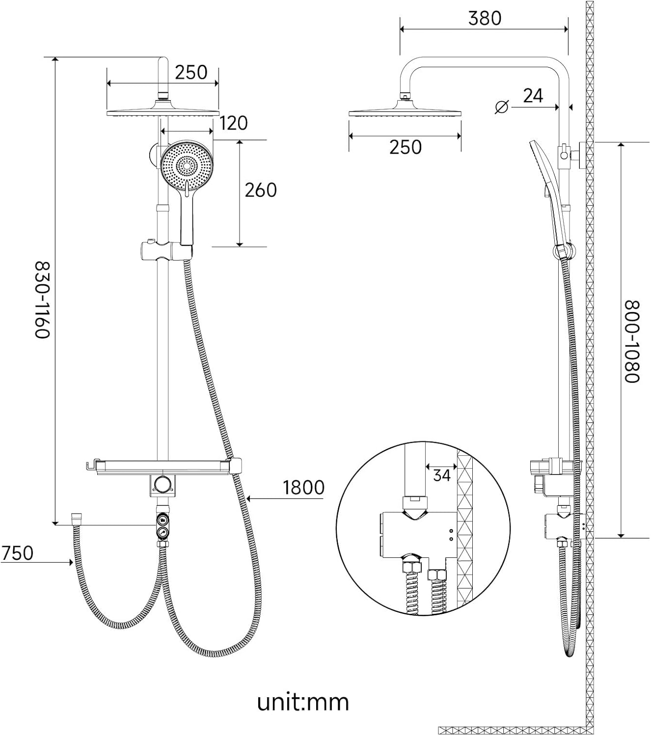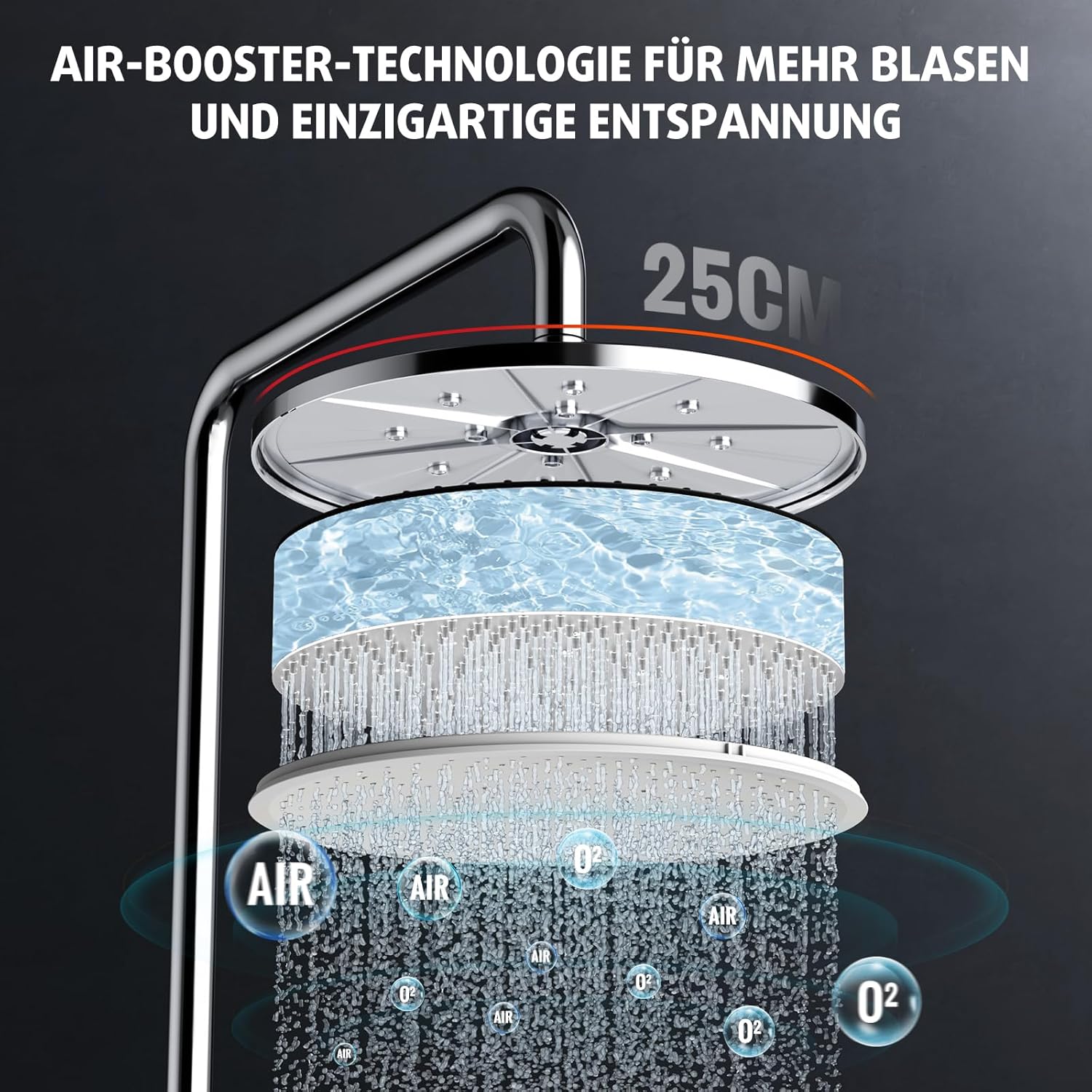 - Regendusche: Die grosse Regendusche aus rostfreiem Stahl mit 25 x 25 cm sorgt für eine vollständige Wasserabdeckung beim Duschen. Der dreifunktionale Handbrause lässt sich leicht zwischen verschiedenen Modi wechseln. Die Höhe und Winkel des Brauses