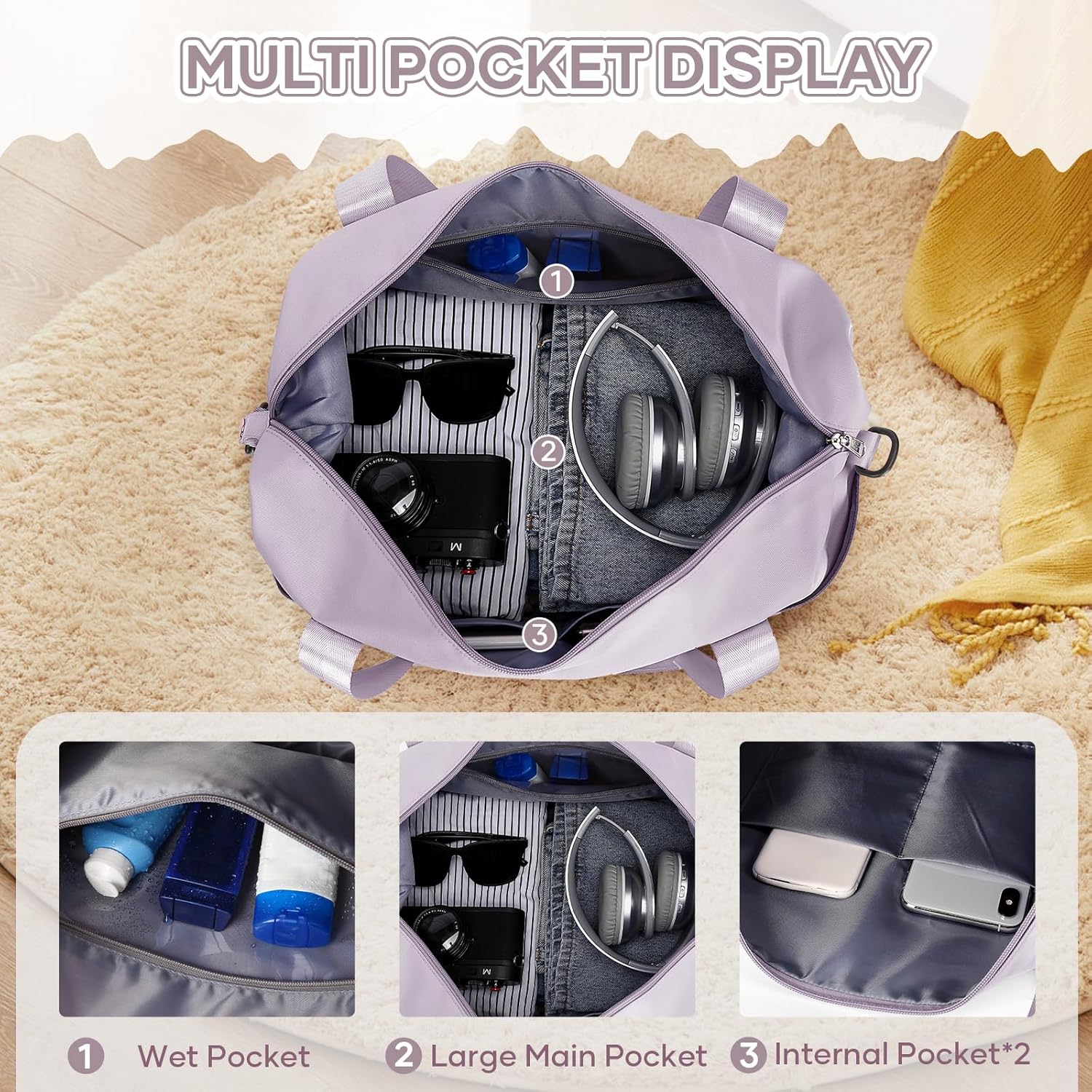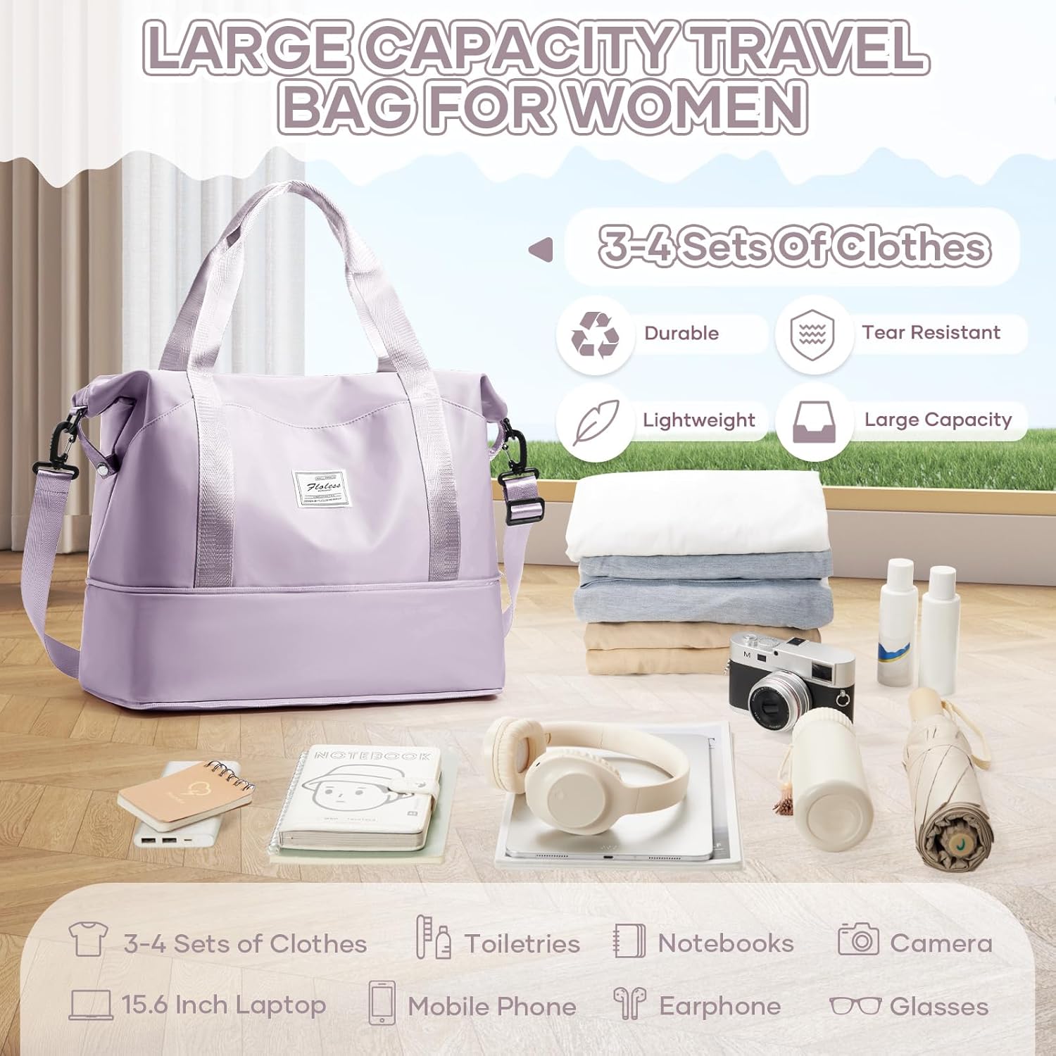 - 【Reisetasche mit hoher Kapazität】Die Reisetasche verfügt über drei mehrere interne und vier externe Organisationstaschen, die dafür sorgen, dass Sie wissenschaftlicher und ordentlicher untergebracht werden können. Die Reisetasche für Damen hat