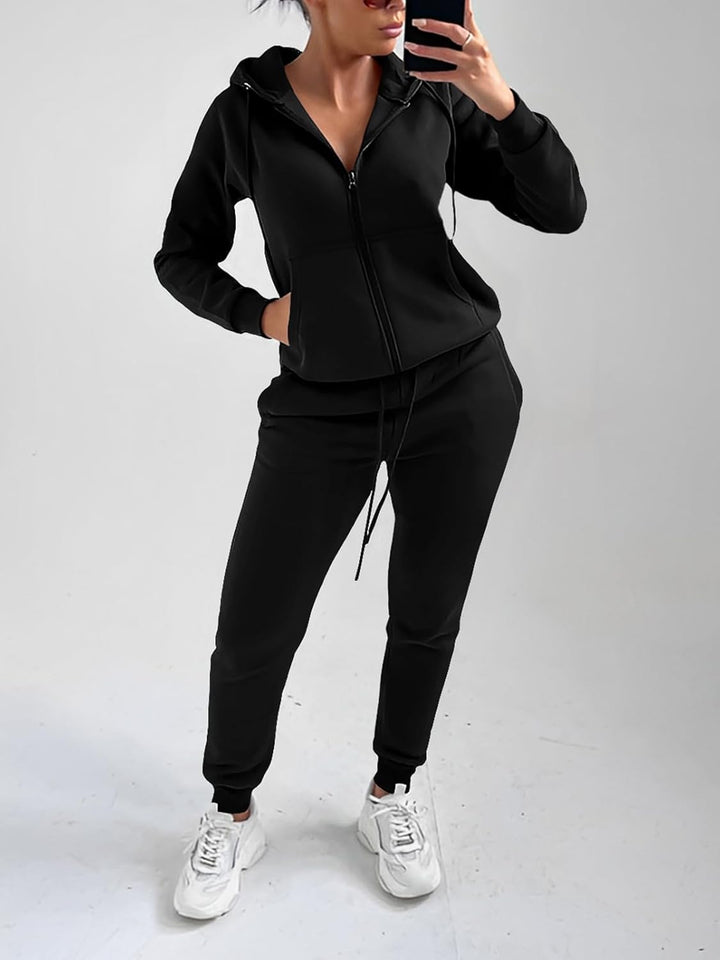 - 🌸Eigenschaften: Die Lounge-Kleidung für Damen besteht aus dickem und weichem Material, einem Reissverschluss, einem Kapuzenpullover mit zwei Taschen, einer schmalen langen Hose, einfarbig, langen Ärmeln, einem elastischen Bund und einem zweiteiligen