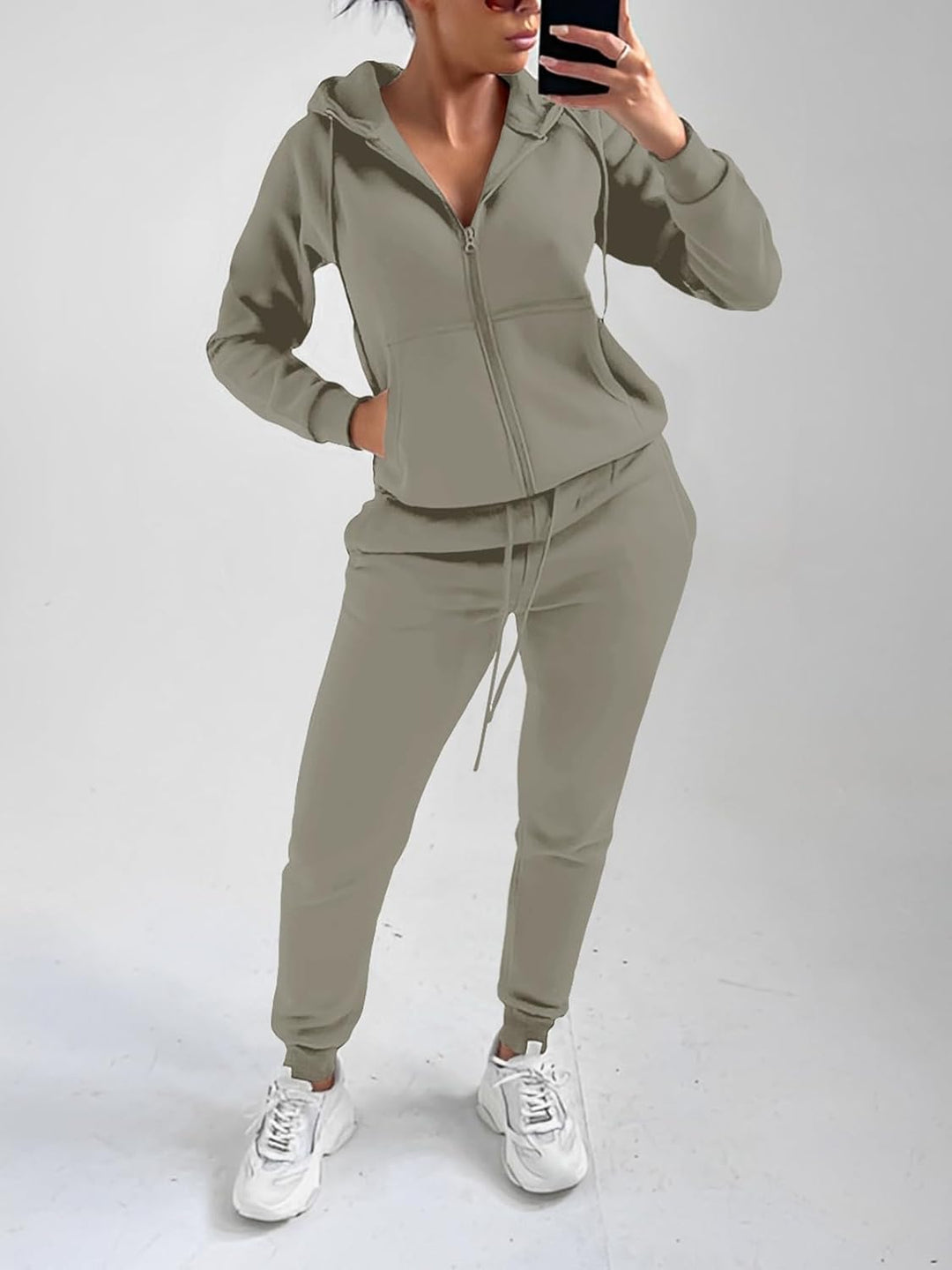 - 🌸Eigenschaften: Die Lounge-Kleidung für Damen besteht aus dickem und weichem Material, einem Reissverschluss, einem Kapuzenpullover mit zwei Taschen, einer schmalen langen Hose, einfarbig, langen Ärmeln, einem elastischen Bund und einem zweiteiligen
