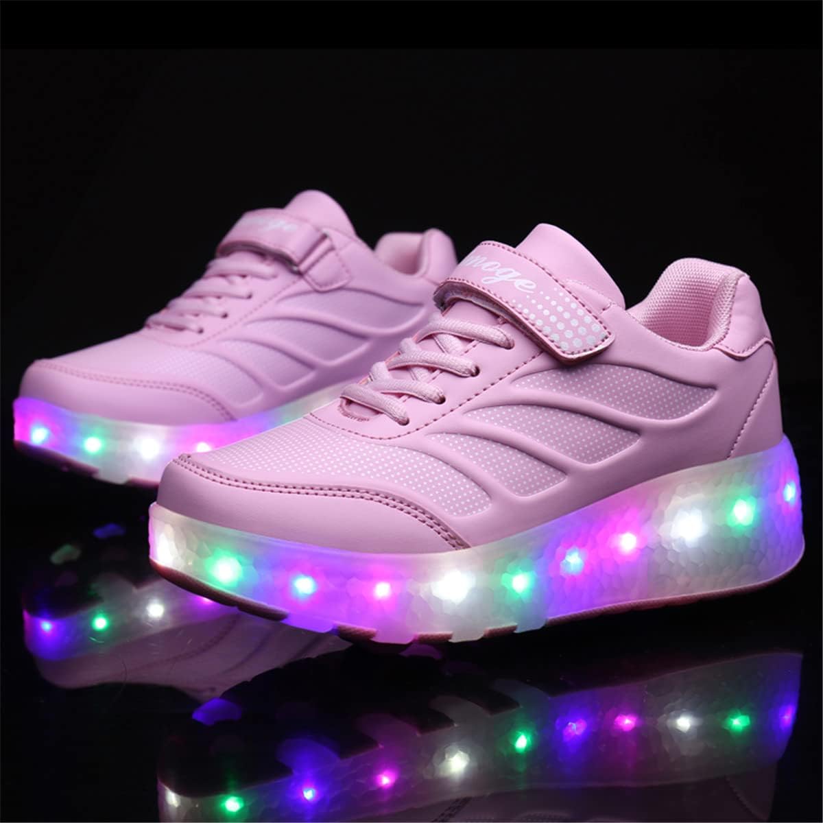- LED-Rollschuhschuhe für Jungen und Mädchen mit Doppelrädern, technische, einziehbare Skateboard-Schuhe für Kinder, leuchtende, glänzende, leuchtende Turnschuhe…