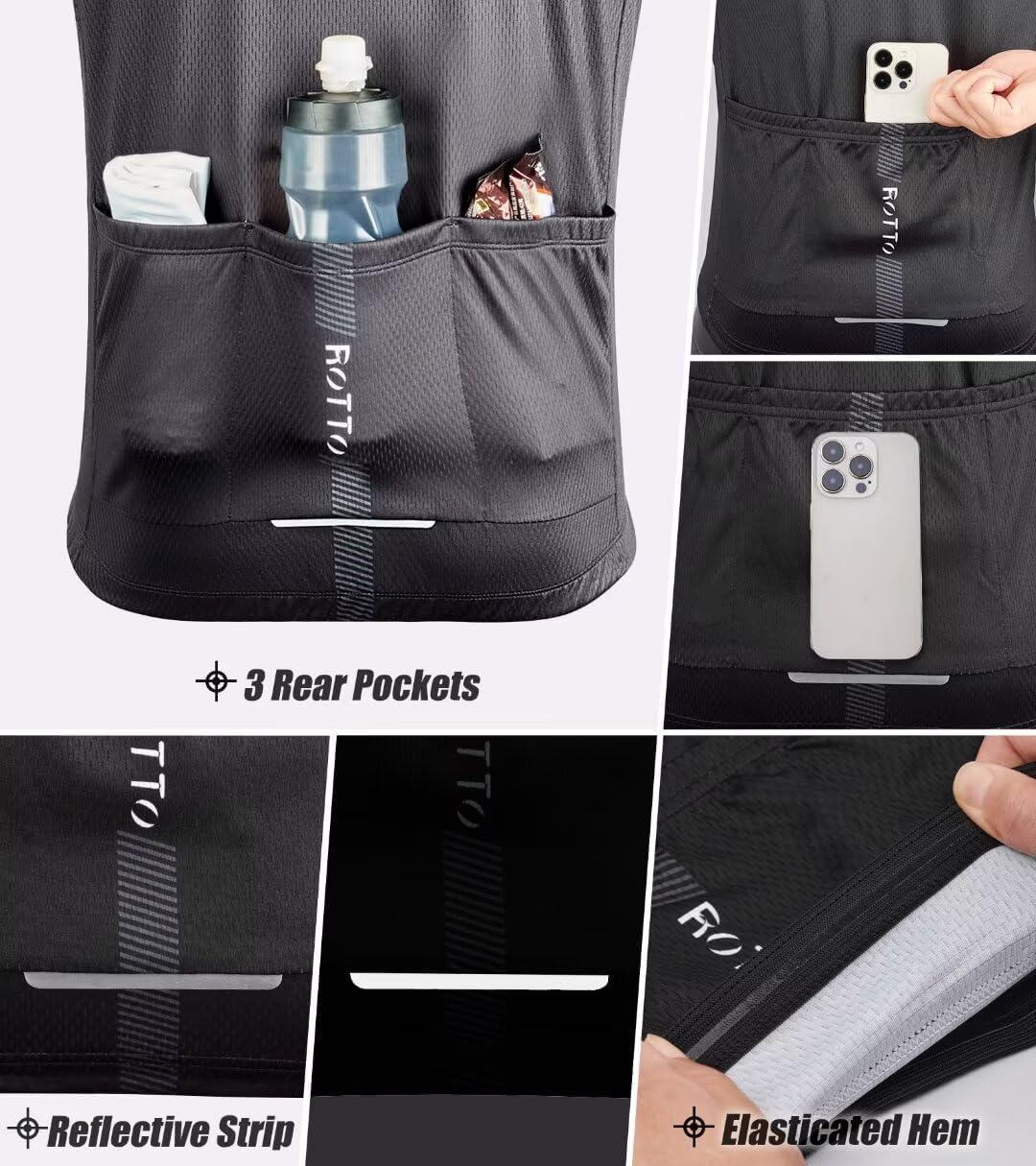 - Atmungsaktiv: Das gesamte Radtrikot ist mit einem ultradünnen, dünnen Streifennetz überzogen, das für zusätzliche Atmungsaktivität sorgt und ausserdem gut zur Wärmeableitung und schnellen Trocknung beiträgt.