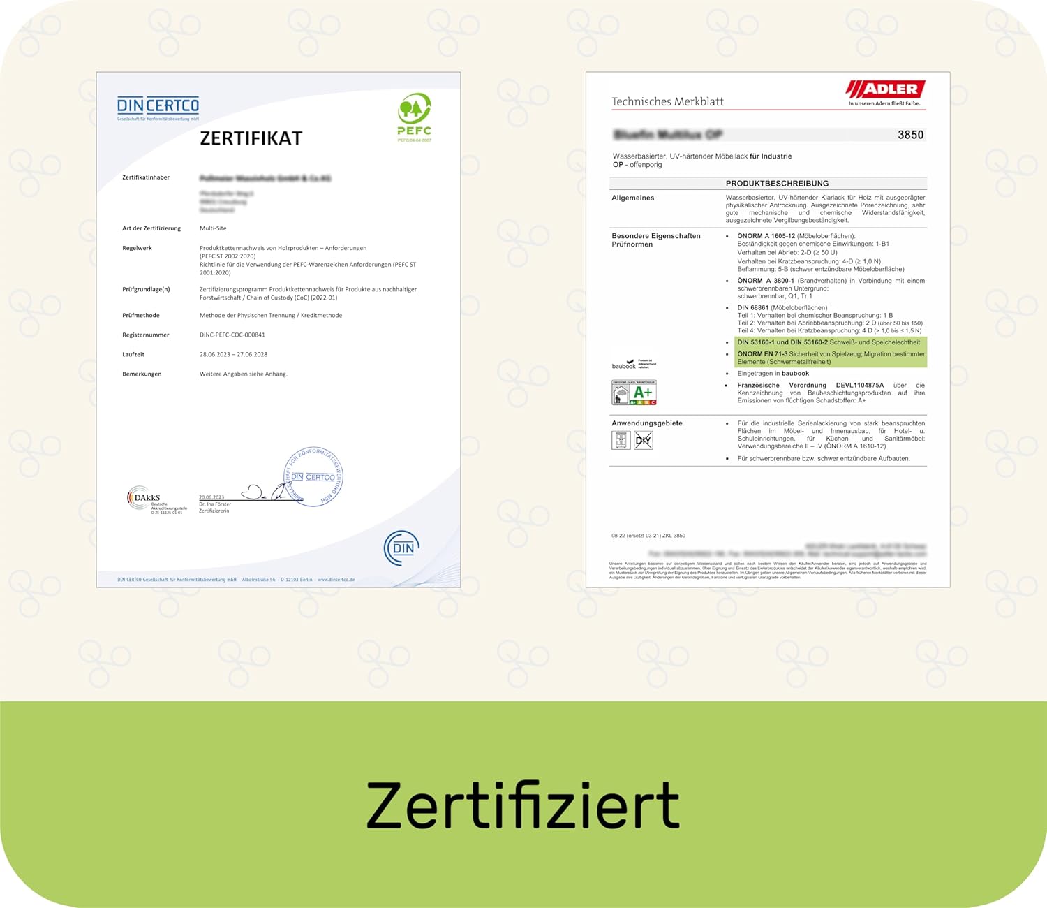 - 🌱 Nachhaltig & zertifiziert. Unser Holzspielzeug ist PEFC-zertifiziert, CE-konform und entspricht strengen Normen wie ÖNORM EN 71-3, DIN 53160-1 & 2. Frei von Schadstoffen, speichelfest und langlebig – für sicheres Spielen ab 2 Jahren.