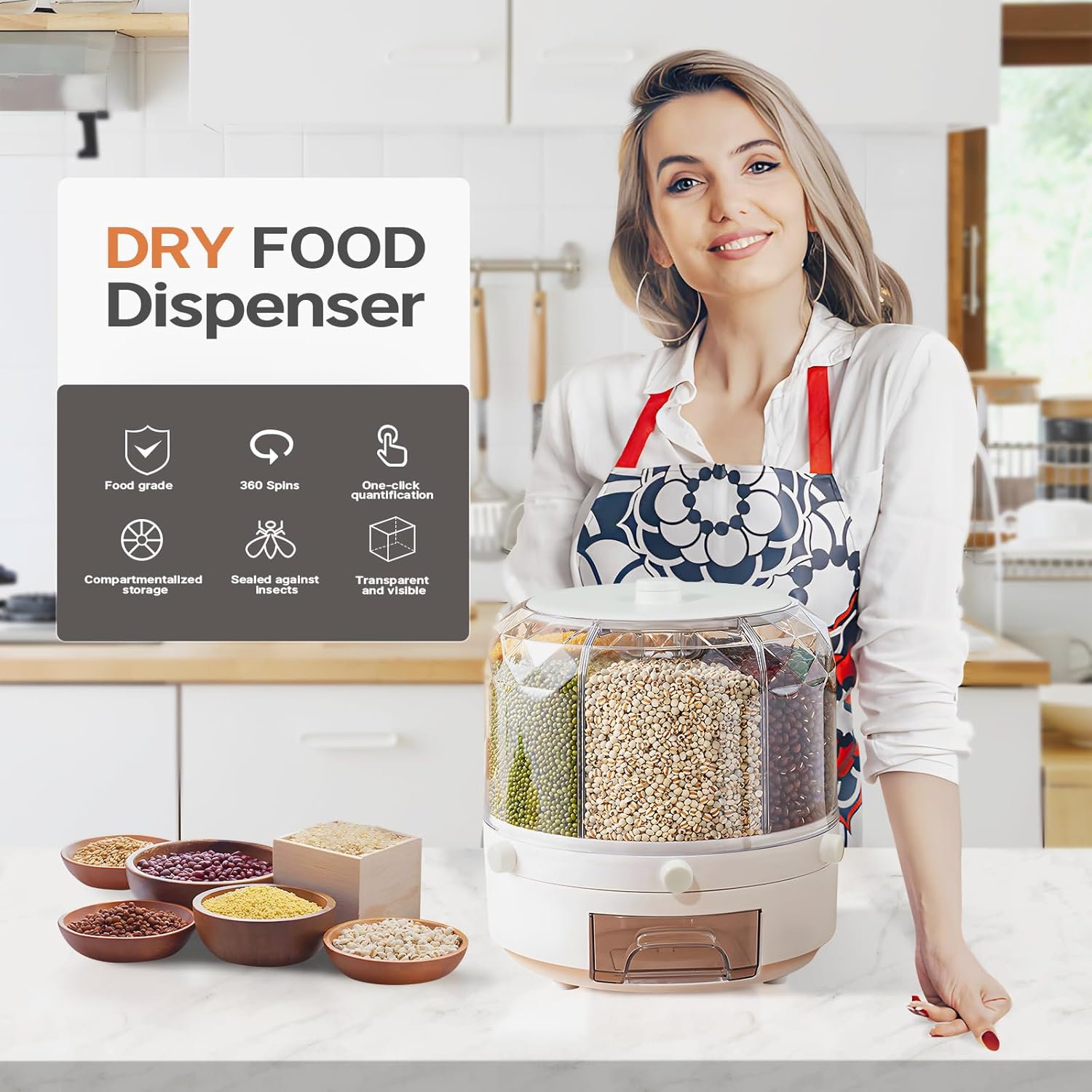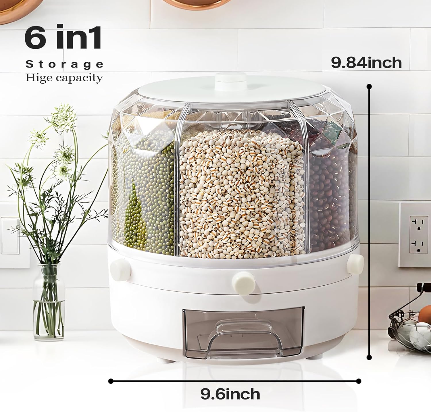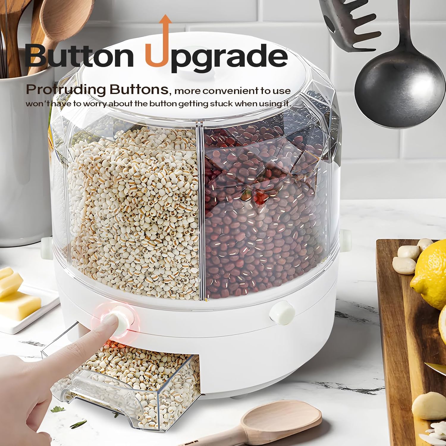 - 【Reibungslose 360-Grad-Drehung】 Mit dem um 360 ° drehbaren Design dieses Aufbewahrungsbehälters für trockene Lebensmittel spart er Platz und macht es einfach, das Getreide zu finden, das Sie benötigen. Nur mit einem sanften Druck kann sich der um
