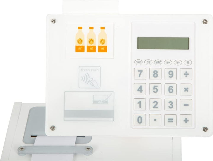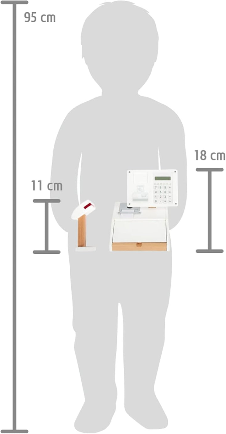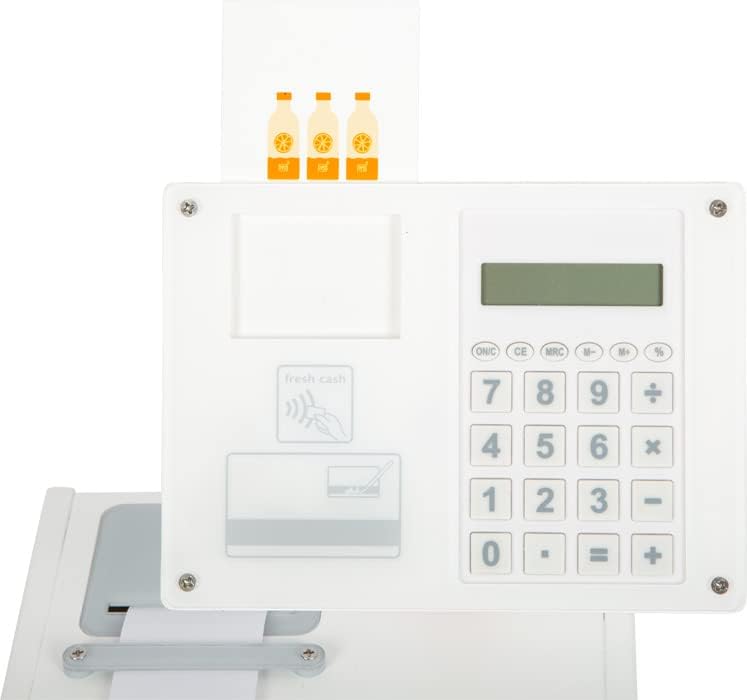 - Beinhaltet 1 Kasse, 1 Karte, 1 Scanbereich, 1 Scanner, 15 Münzen, 5 Lebensmittelkarten, 1 Bonrolle, 1 Stift