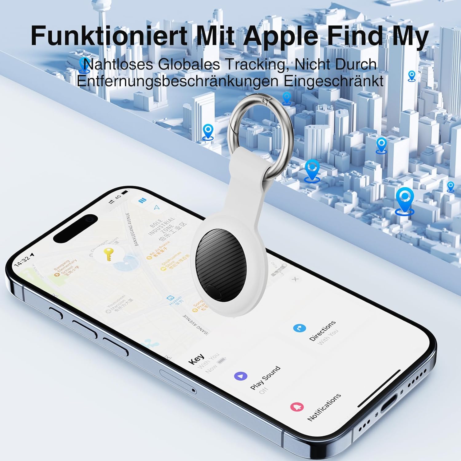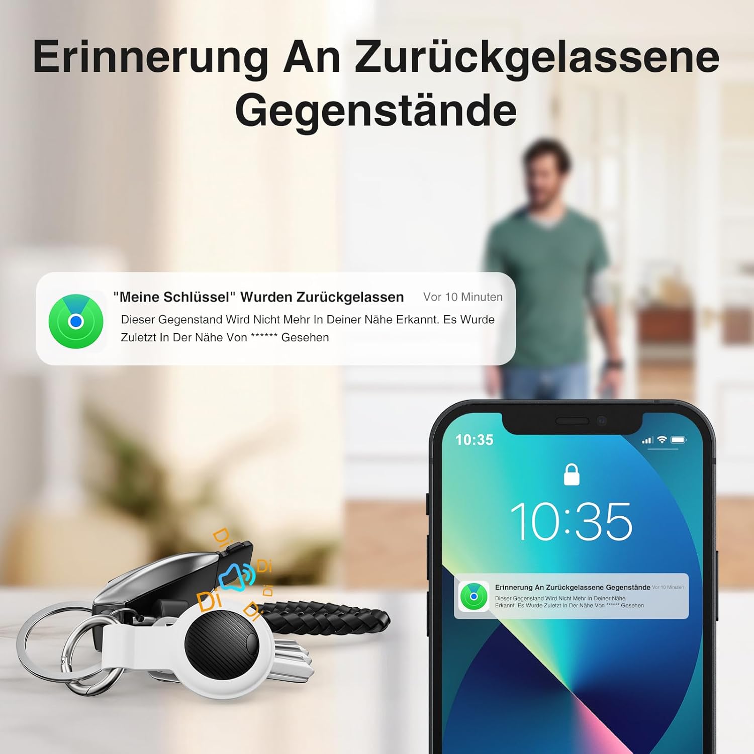 - Akustische und visuelle Warnungen: Im Falle eines Verlusts können Sie eine akustische Warnung von Ihrem Telefon aus aktivieren, um Ihre Gegenstände schnell zu finden. Darüber hinaus werden Sie durch Push-Benachrichtigungen automatisch benachrichtigt,