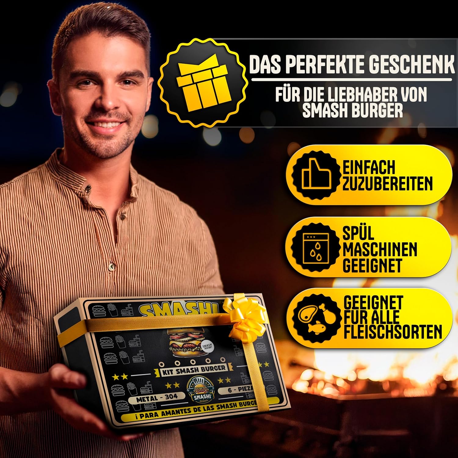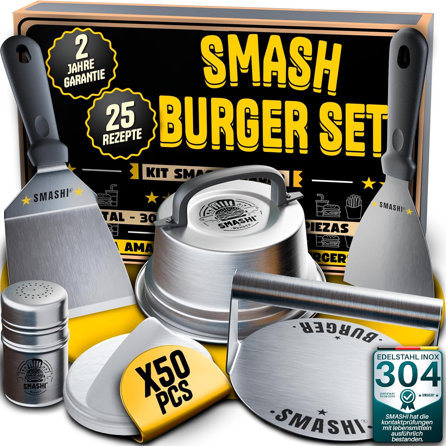 - 🍔 DAS SMASH BURGER SET FÜR PROFIS ZUHAUSE | Dieses Smash Burger Set bietet dir alles, was du brauchst, um perfekte smashed Burger mit Käse, Crunch und Stil direkt in deiner Küche zuzubereiten.