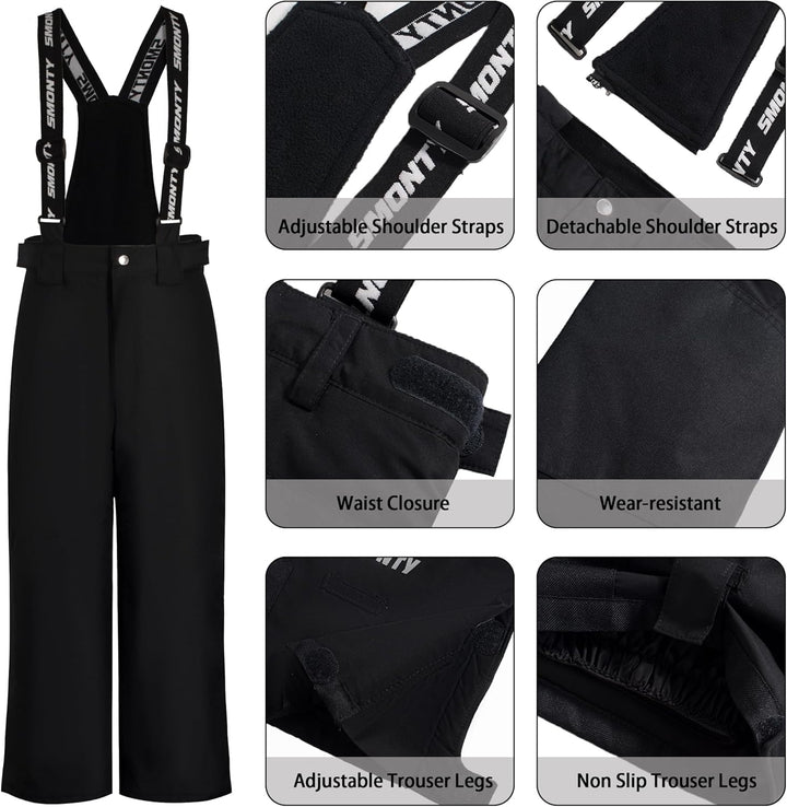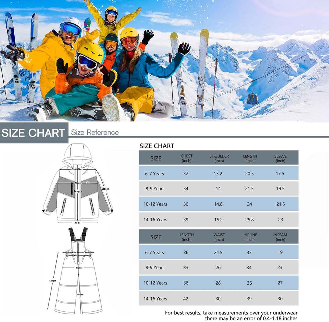 - ⛷ Verstellbare Skihose: Verstellbare Taille und abnehmbare Schultergurte, verstärkte Knie und Leggings mit Bündchen halten Kinder warm und bequem.