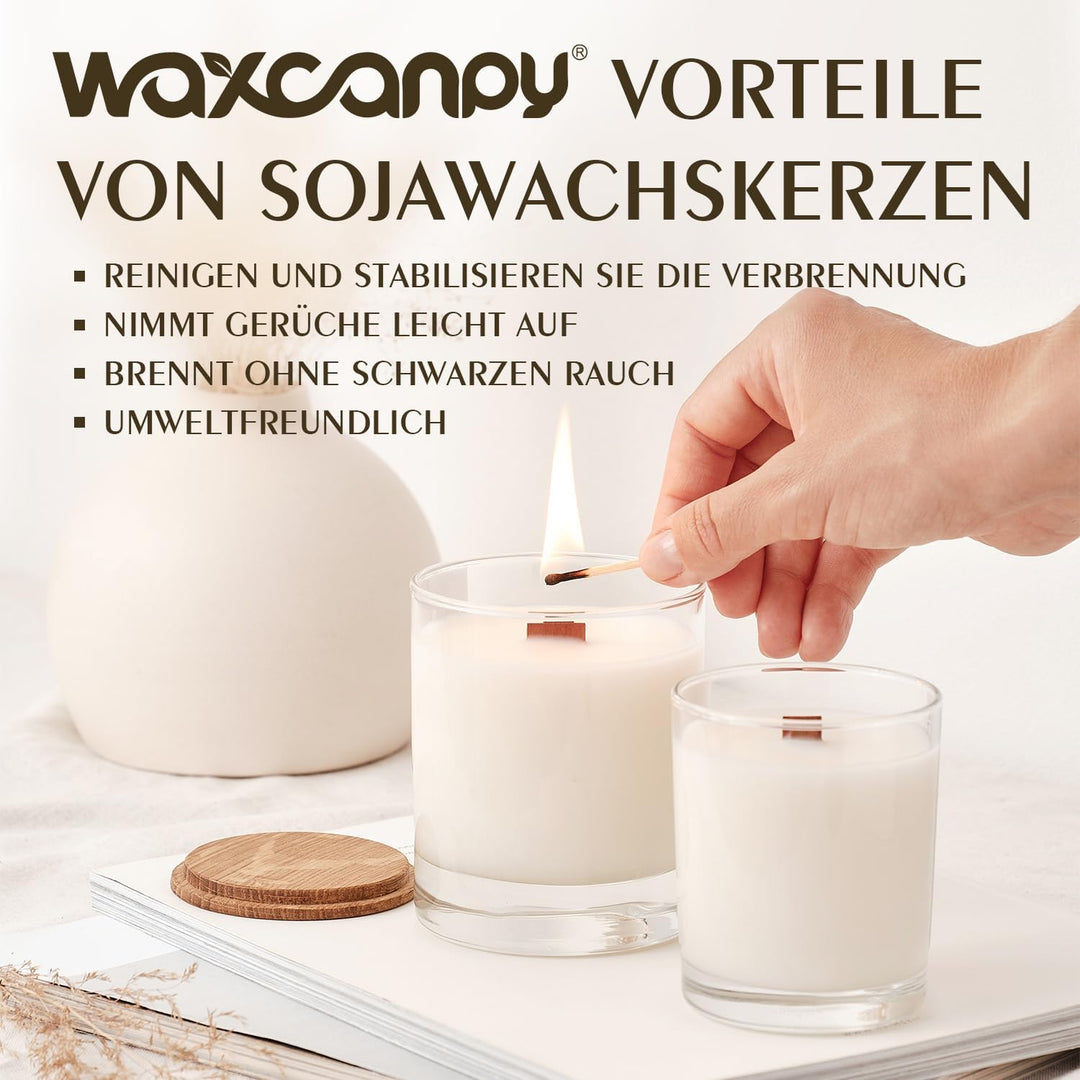 - 【Super saubere Verbrennung】Waxcanpy Sojawachs wird aus rein natürlichen Bio-Sojabohnen hergestellt, brennt sauberer und erhöht die Duftlast, was zu mehr Düften (kalt und heiss) führt. Rein natürliche Inhaltsstoffe produzieren keine Schadstoffe