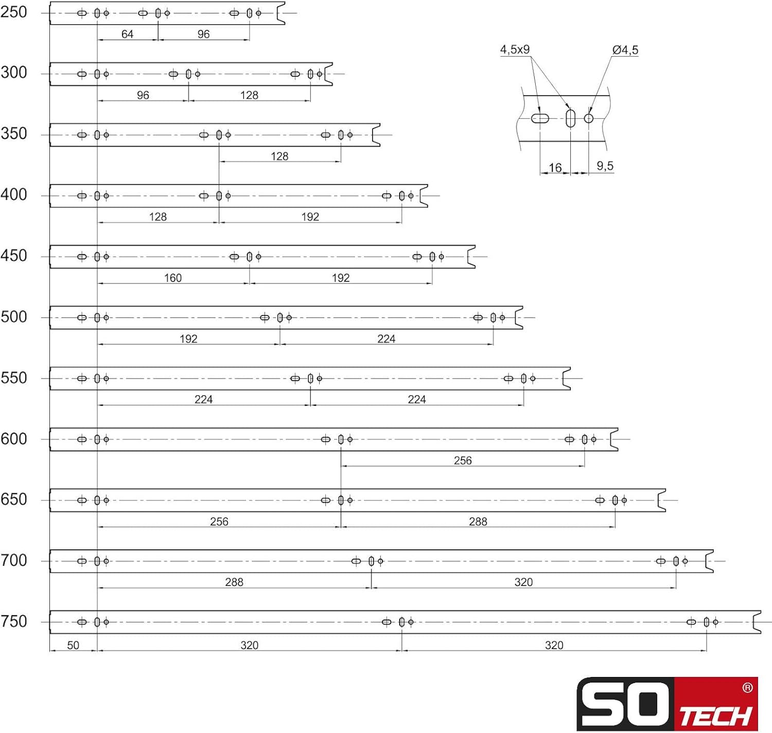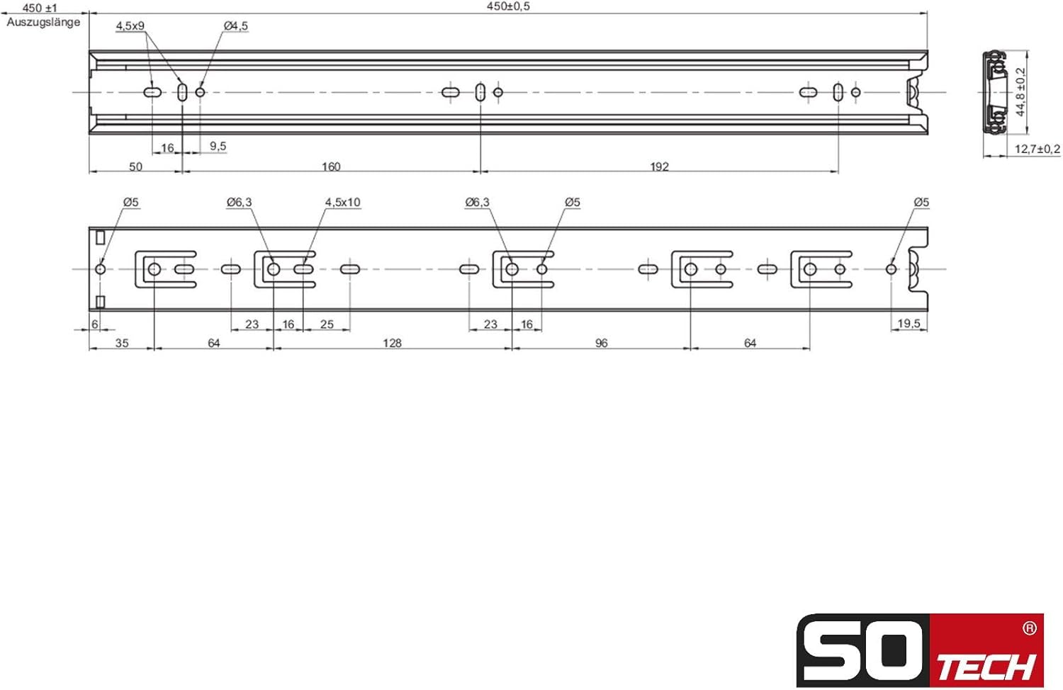 - ✅ Länge: 450 mm / Höhe: 45 mm / Breite: 12,7 mm / Belastbarkeit: bis 45 Kg (pro Paar)