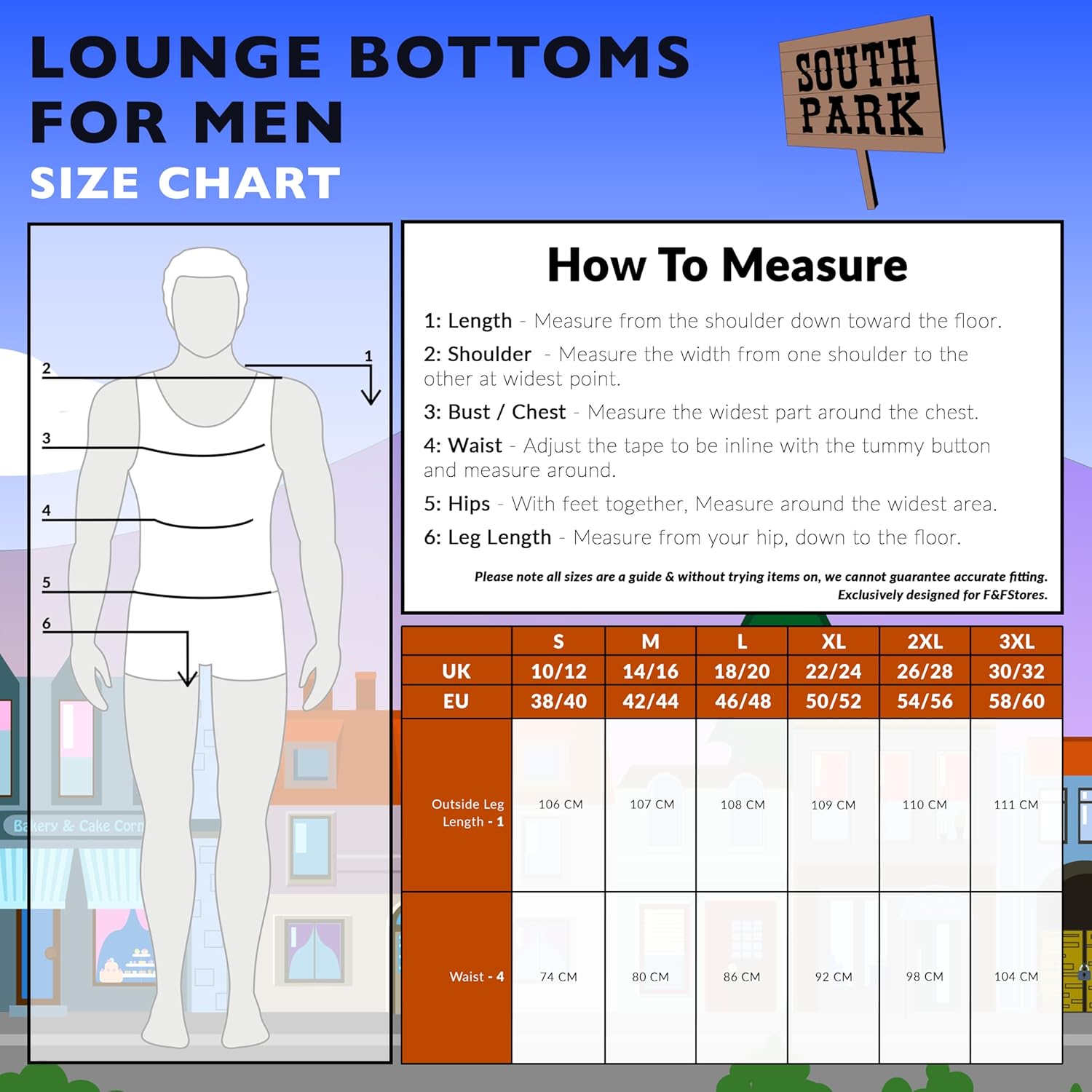 - Warum sich mit gewöhnlichen Schlafanzughose Herren lang begnügen? Entscheiden Sie sich für Charakter, Stil und Gemütlichkeit mit unserer South Park Pyjama Hose. Ob für Sie selbst oder als Geschenk für einen South Park-Fan, diese Hose wird
