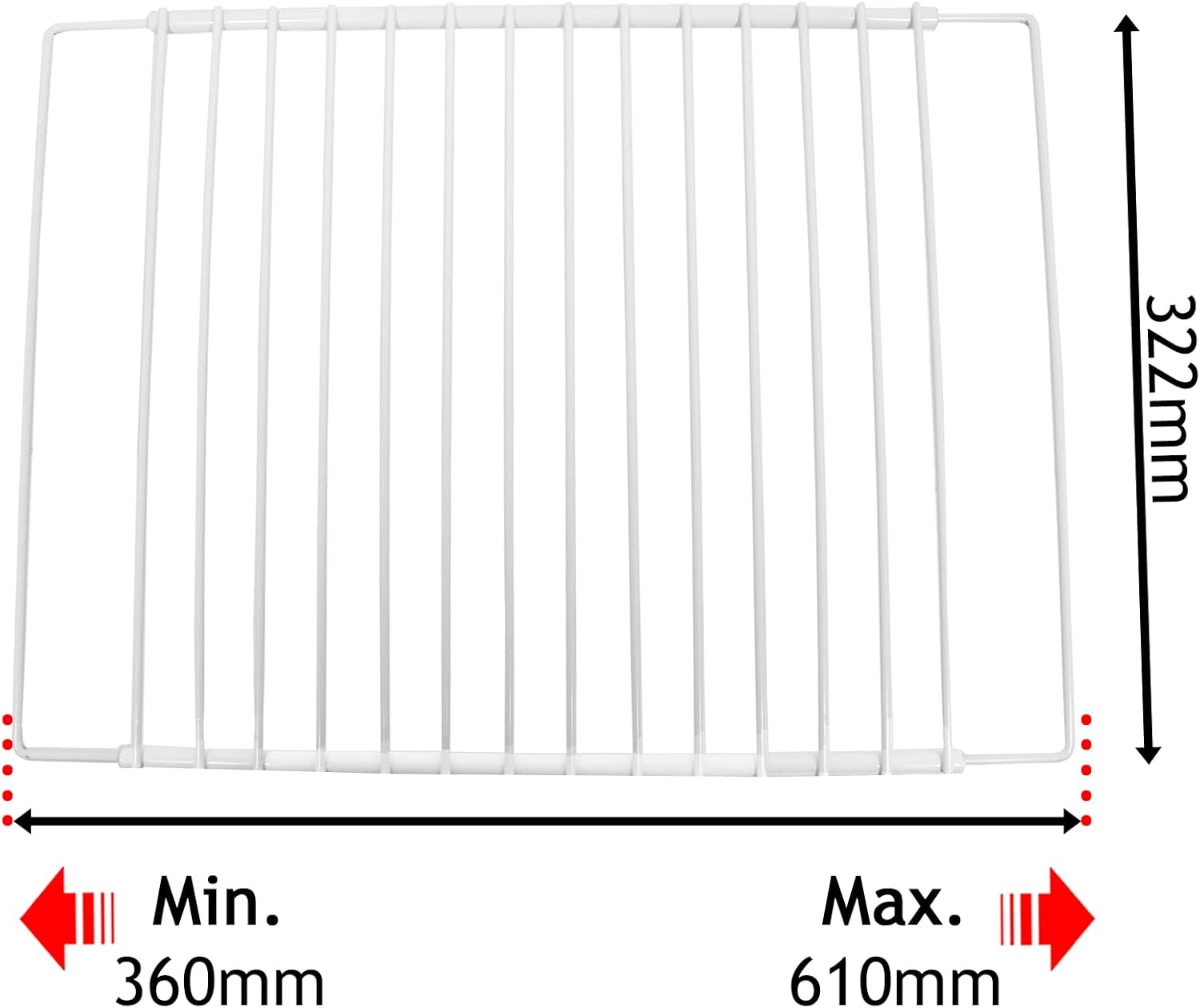 - Masse: Tiefe: 322 mm, Einstellbare Breite: 360 mm min. -- bis -- 610 mm max