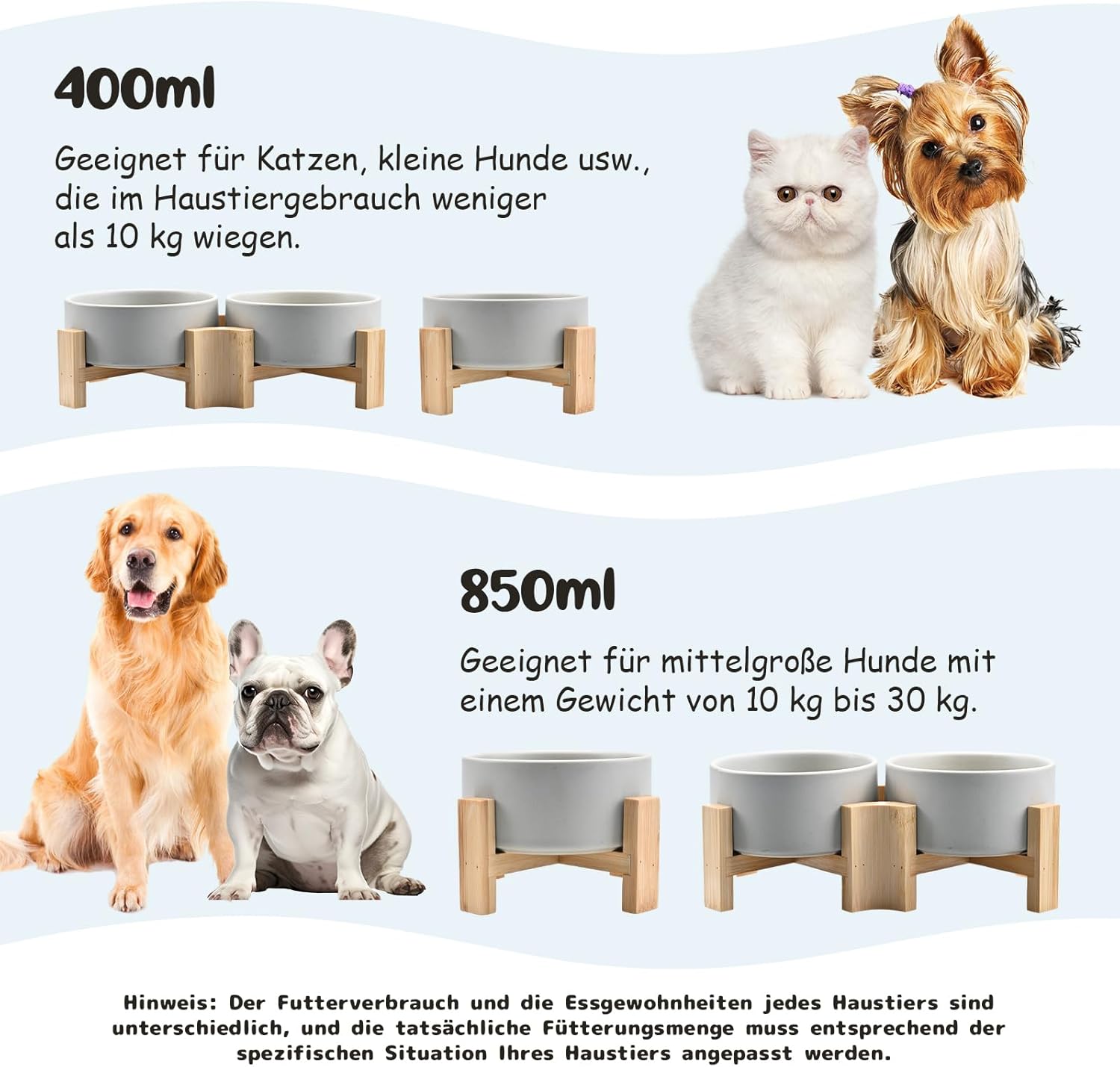 - [MATERIAL] Die geneigte Hunde- und Katzenschüssel von SPUNKYJUNKY verwendet sichere Keramik (frei von Blei und Cadmium), die bei hoher Temperatur gebrannt wird, und einen natürlichen Bambus- und Holzständer, um Ihren Haustieren eine gesunde