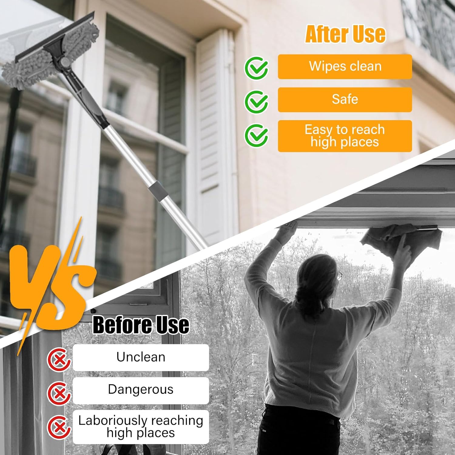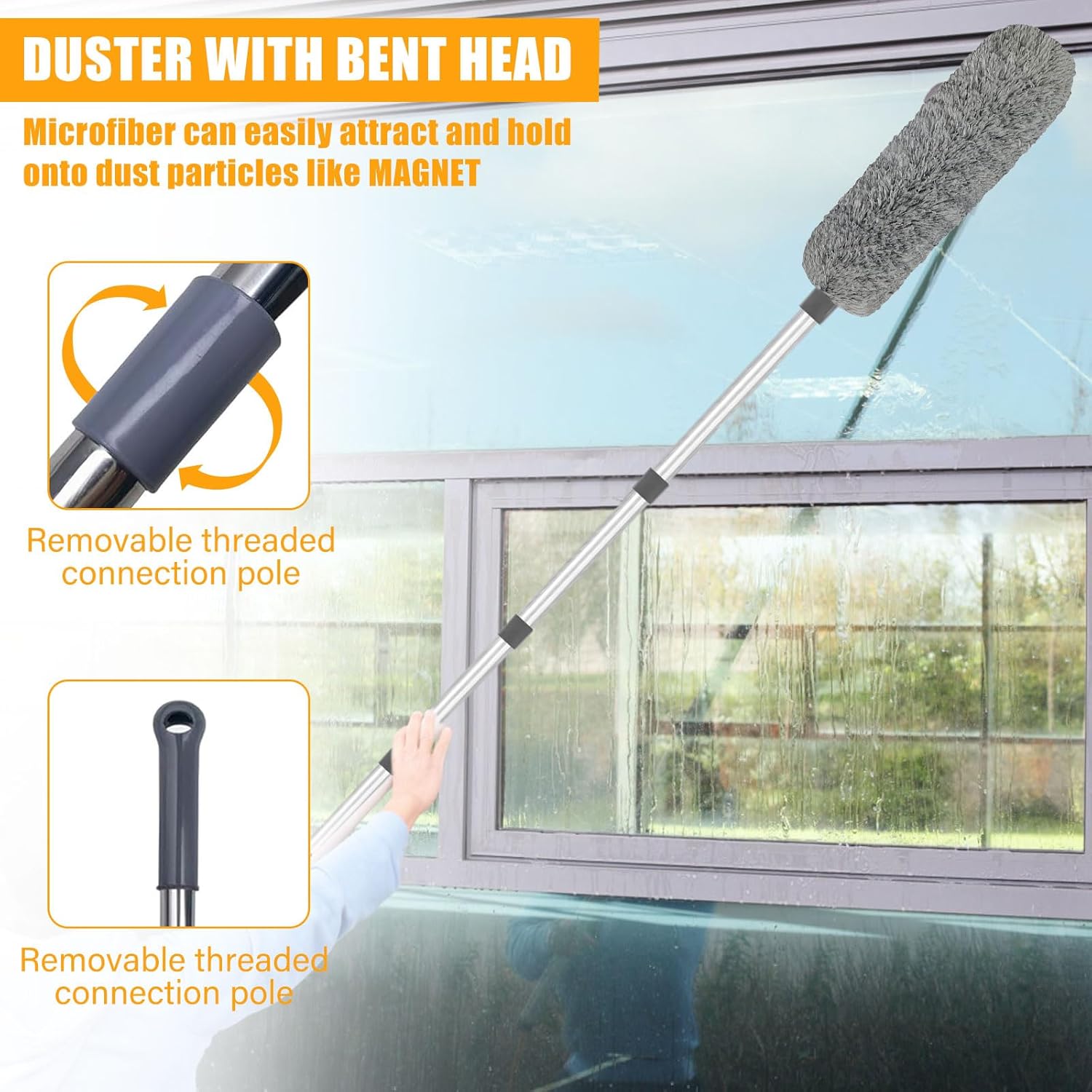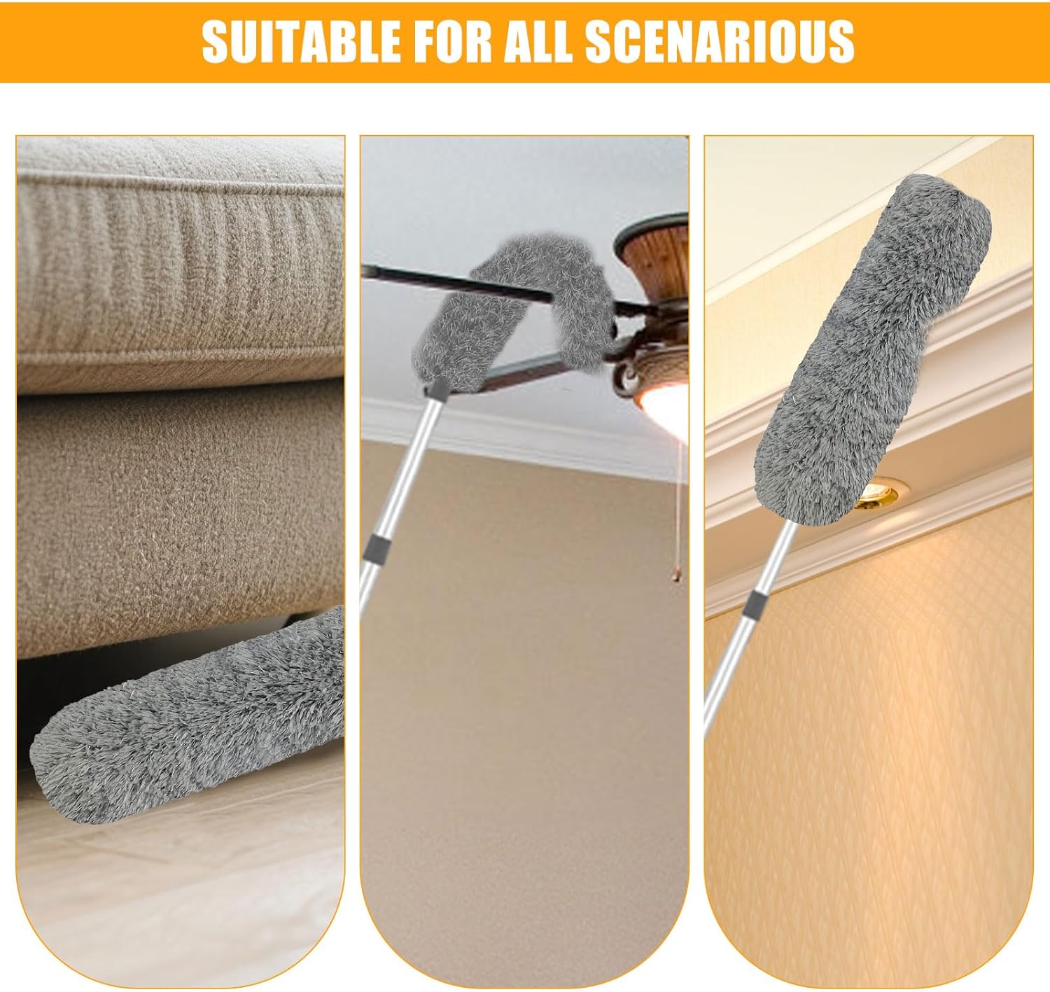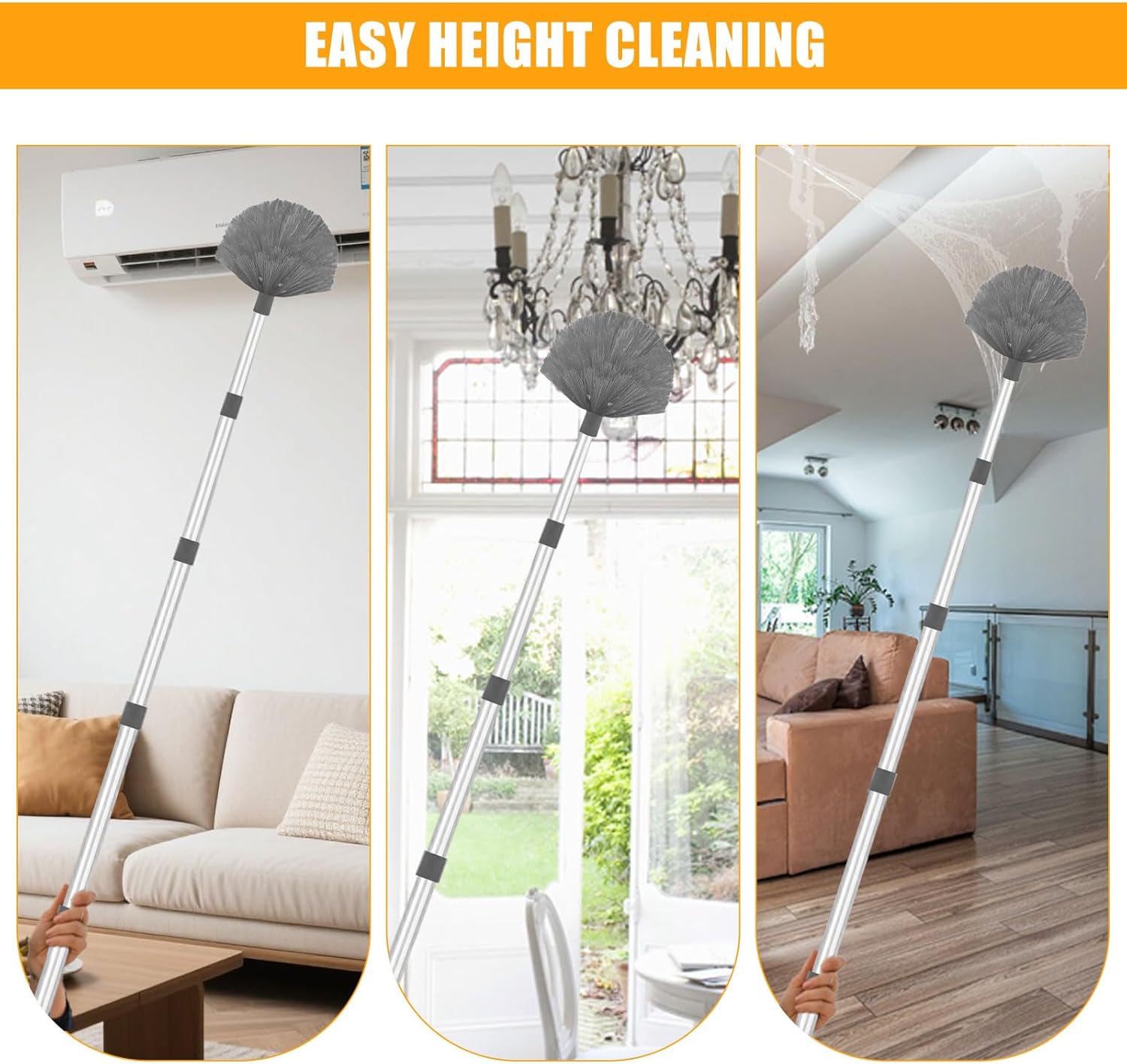 - 【Auf Wiedersehen mit Spinnweben und Staub】 Sie können es verwenden, um hohe Decken / Glas, Aussenwände, Ventilatoren, Lüftungsschlitze von Klimaanlagen, Lampenschirme, Haushaltsgeräte, Formen, Wände, Fensterläden, Autos, Bilderrahmen,