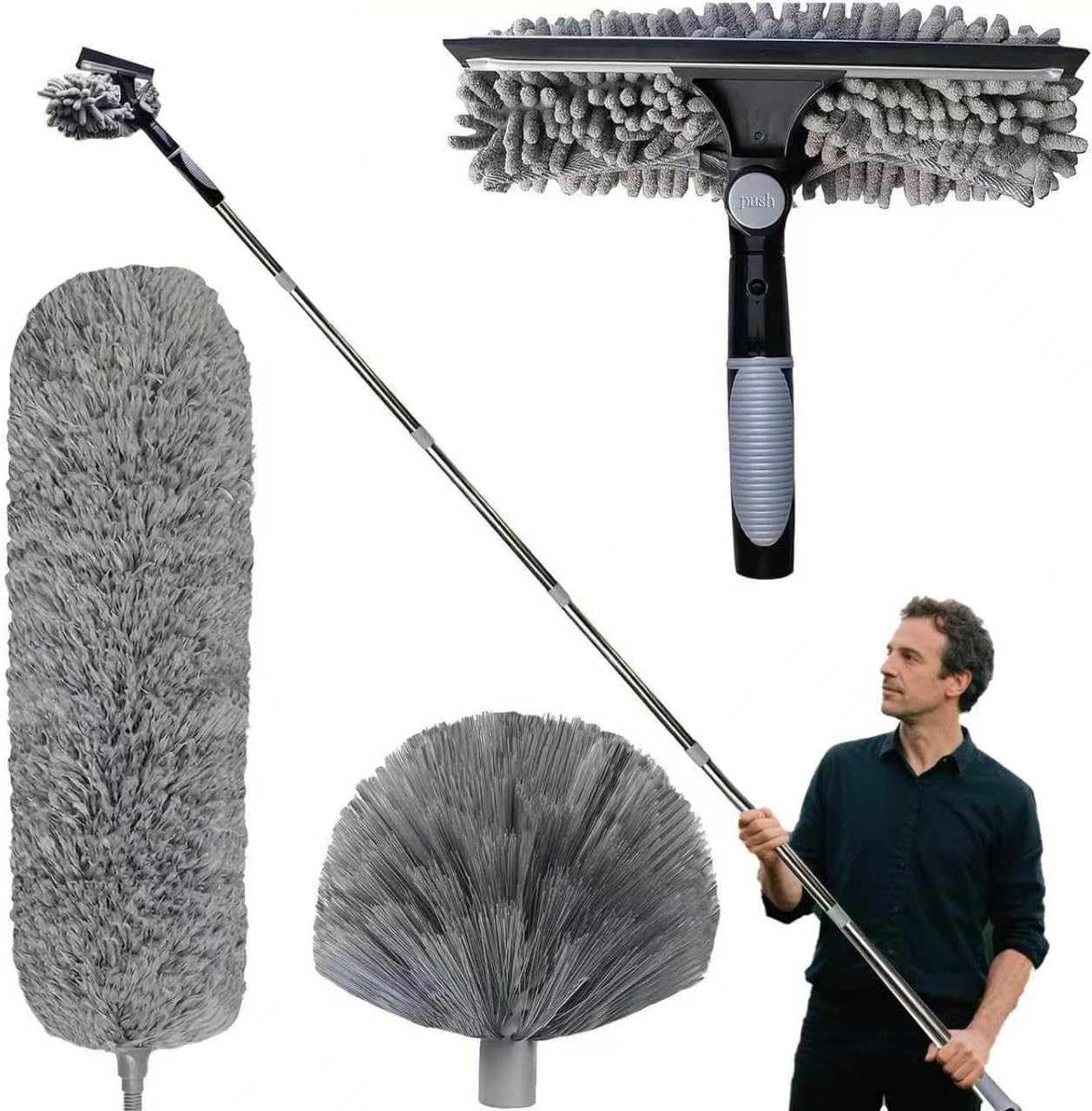 - 【3 Stück Staubwedel Teleskop 6m】 Dieses Mikrofaser-Handstaubtuch-Set enthält 1,5 à 4,9 m Verlängerungsstange (Edelstahlstangen können je nach Bedarf installiert werden), 1 Stück Fensterwischer, 1 Stück Spinnennetz-Staubwedelkopf und 1 Stück