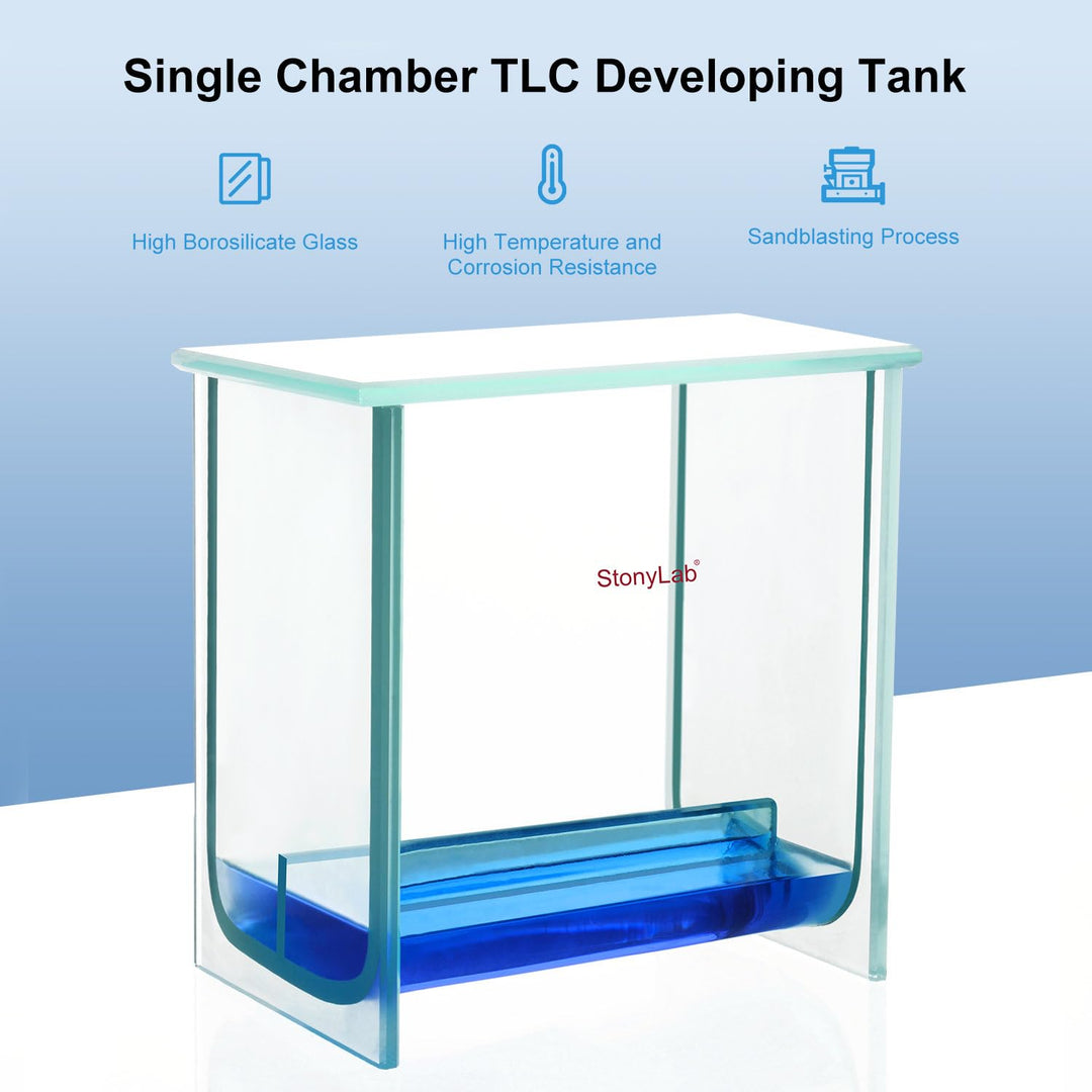 - StonyLab quadratischer TLC-Entwicklungstank ist professionell mit innen angehobenem Grat auf der Unterseite für zwei Lösungsmittel entworfen, um mehrere TLC-Platten in geeigneten Grössen gleichzeitig zu entwickeln
