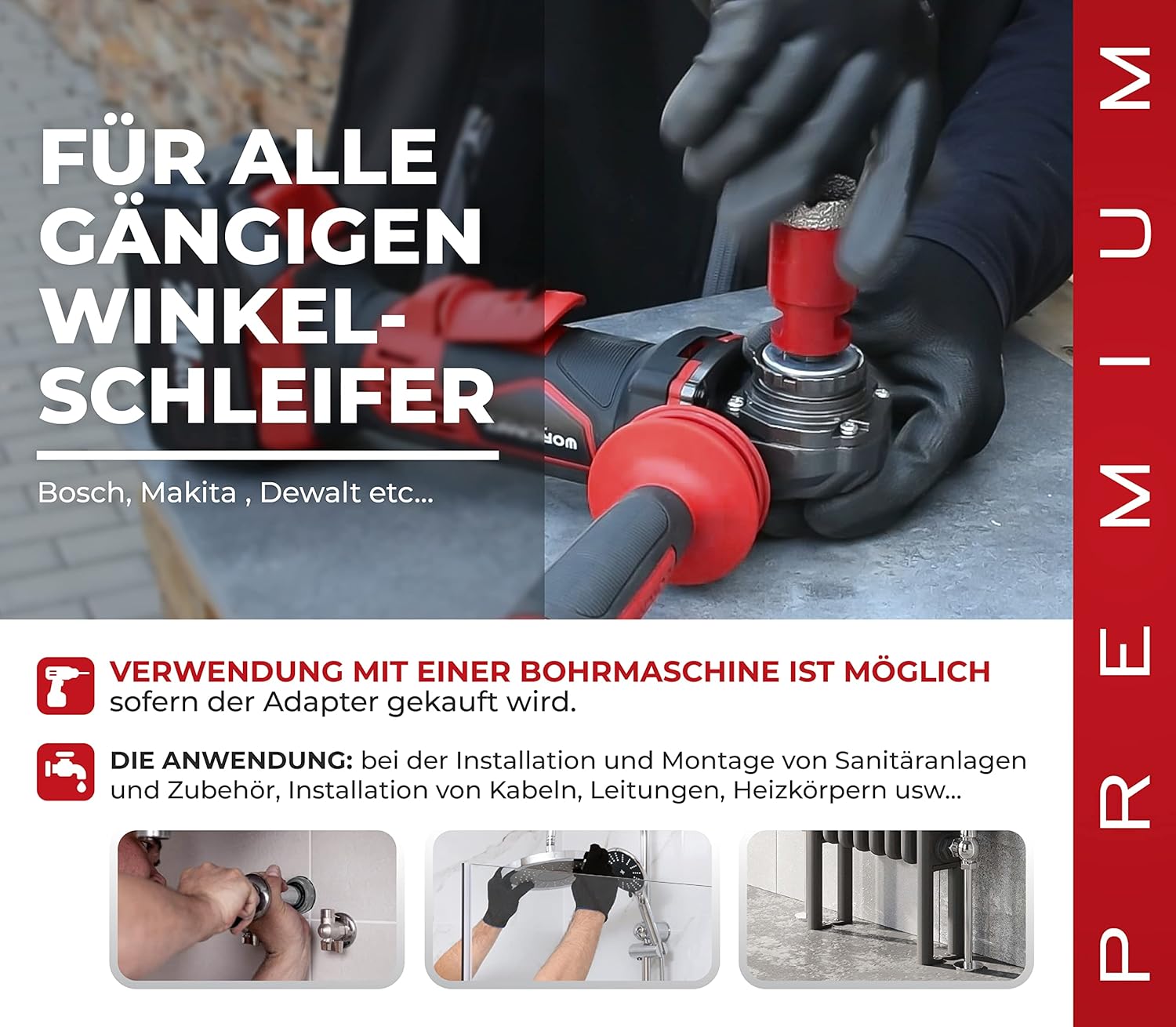 - ✔ VERSCHWENDEN SIE IHRE ZEIT NICHT MIT LANGSAMEN SCHNITTEN! Eine sehr dichte Diamantschicht ermöglicht aggressivere und schnellere Schnitte. Unsere fliesen bohrkrone können mit allen gängigen Arten von Winkelschleifern mit M14-Spindel verwendet