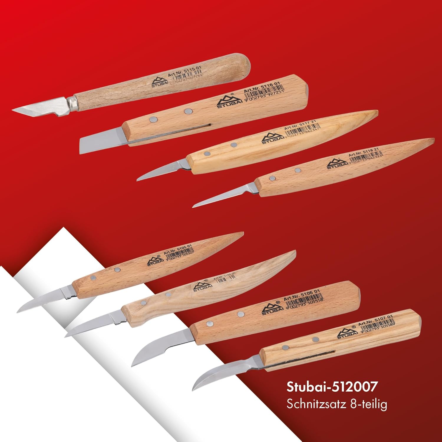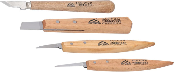 - Anwenderhinweis: Die Schnitzwerkzeuge werden gebrauchsfertig auf 20 bis 30 Grad vorgeschliffen geliefert und können je nach Bedarf nachgeschärft werden