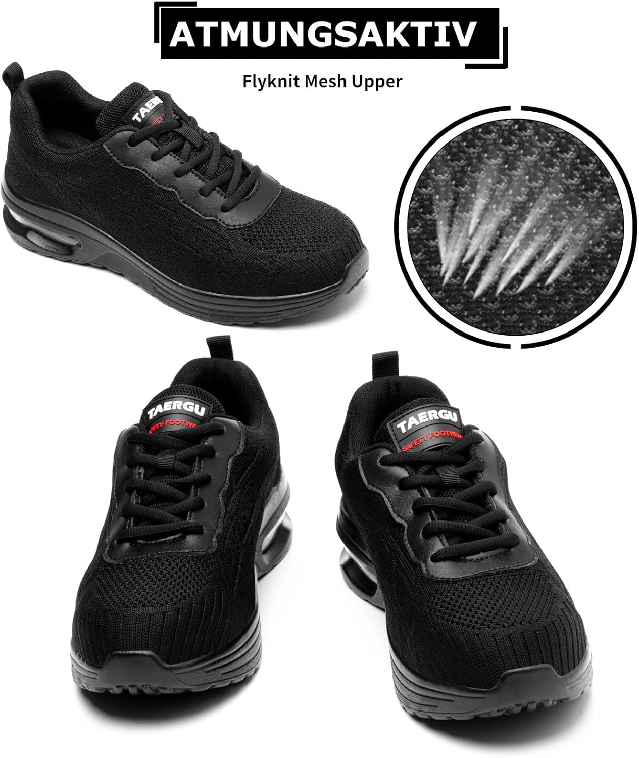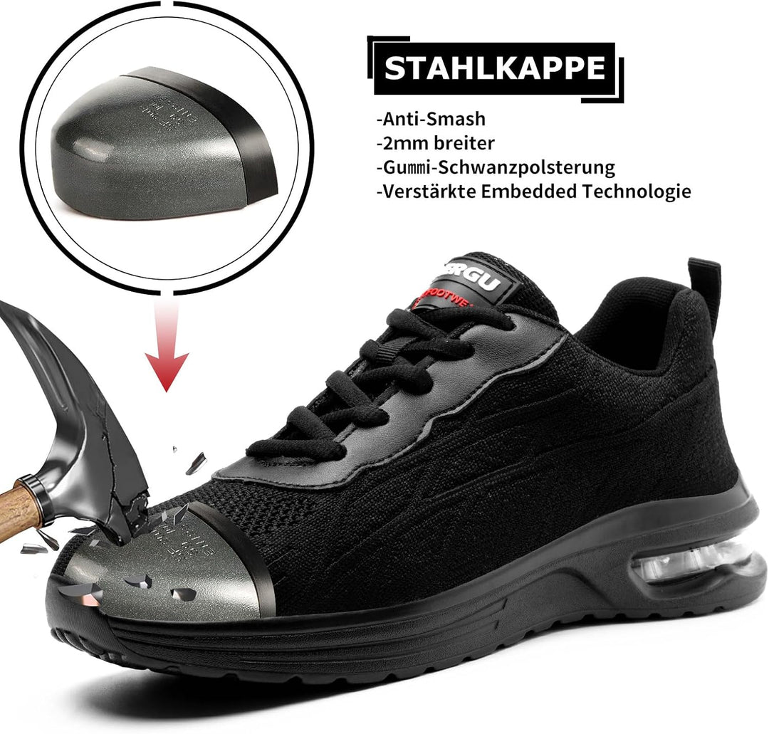 - TAERGU Sicherheitsschuhe nach EN ISO 20345:2022 mit Stahlkappe für maximalen Schutz vor Fussverletzungen Extra Fuss- und Zehenschutz für optimale Tragesicherheit.