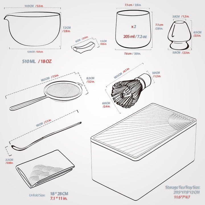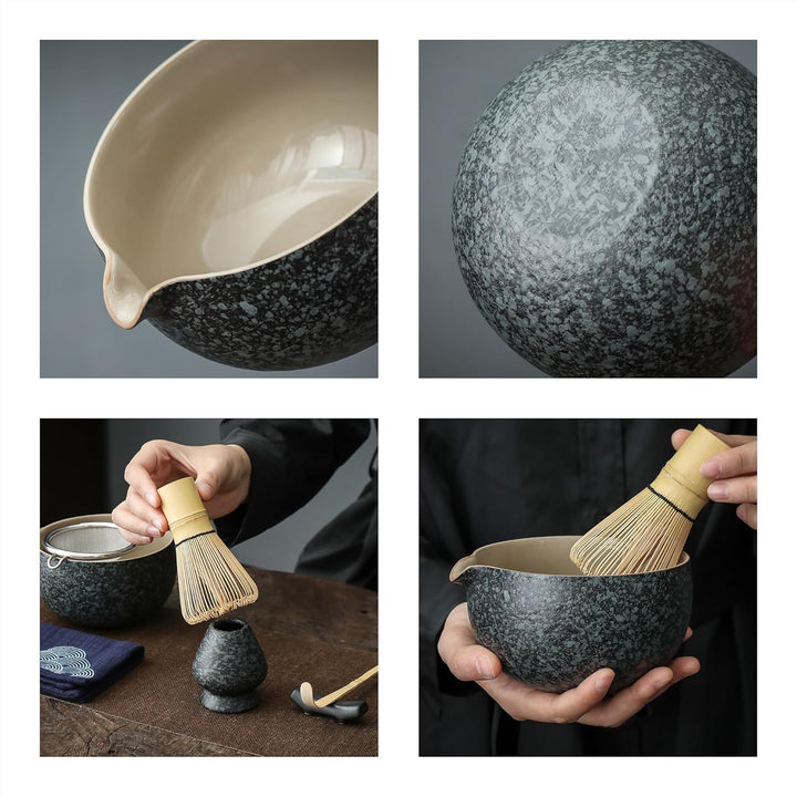- PREMIUM MACHATA CEREMONY SET. 12-teiliges Set, enthält: 1 x Bambus-Schneebesen, 1 x Bambusschaufel (Chashaku), 1 x Keramikschale (Chawan) 510 ml, 2 x Keramikbecher (204 ml), 1 x Keramik-Schneebesenhalter. 1 x Keramik-Schaufelständer, 1 x
