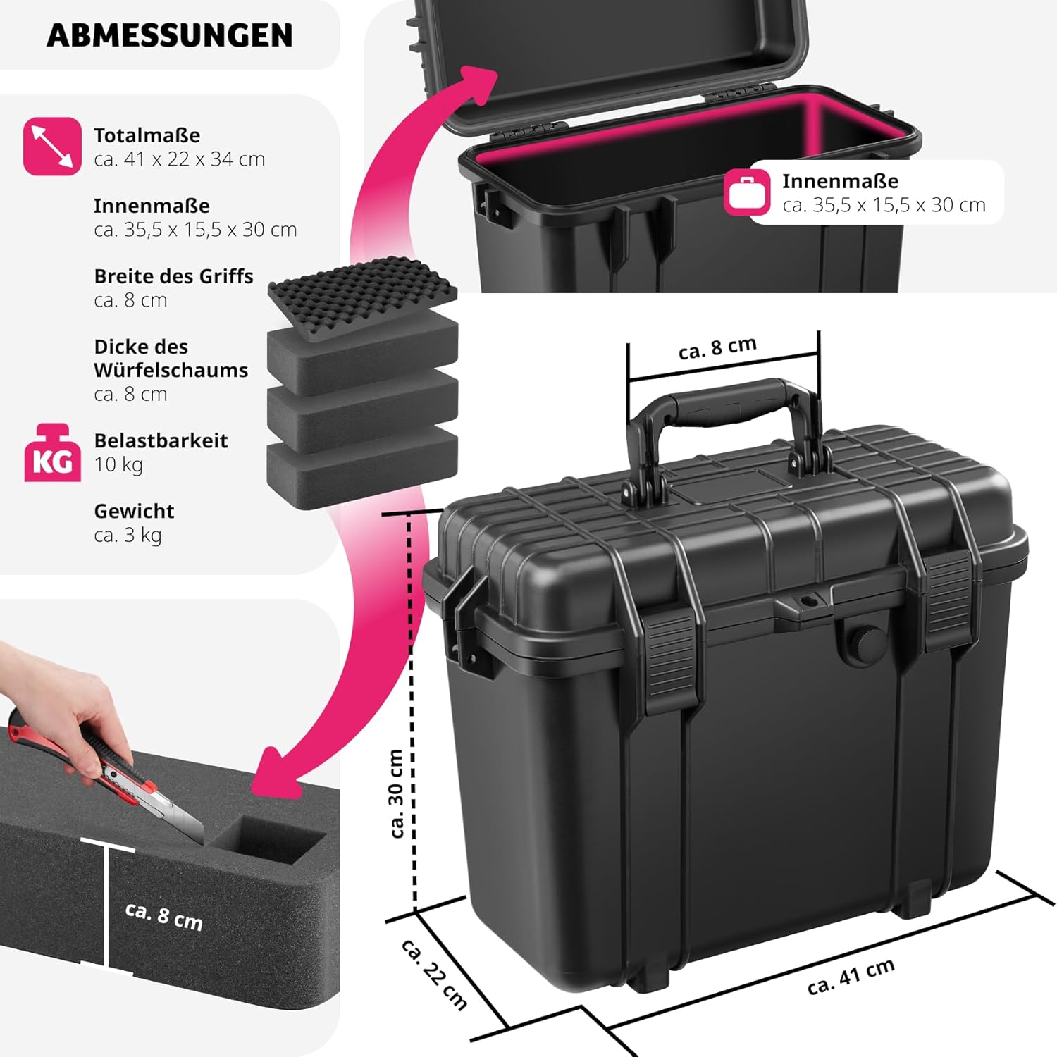 - MEHRZWECKKOFFER MIT VIELSEITIGER VERWENDUNG: Du kannst diesen Transportkoffer für eine Vielzahl von Anwendungen nutzen, sei es als Kamera Case Fotokoffer, zur Werkzeugaufbewahrung als Maschinenkoffer oder als Flightcase. Mit seinen multifunktionalen