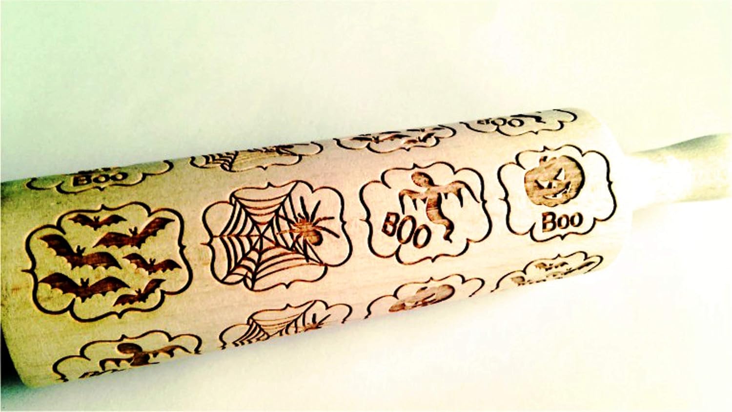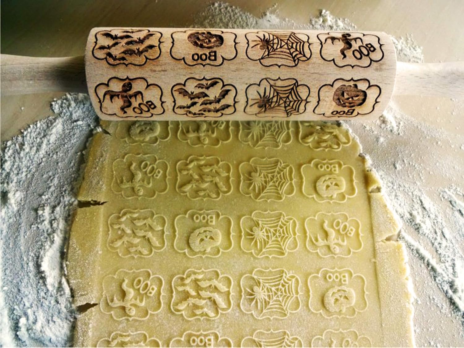 - Die Lasergravur wird auf dem Nudelholz angebracht und hinterlässt einen deutlichen Abdruck auf dem bearbeiteten Teig.