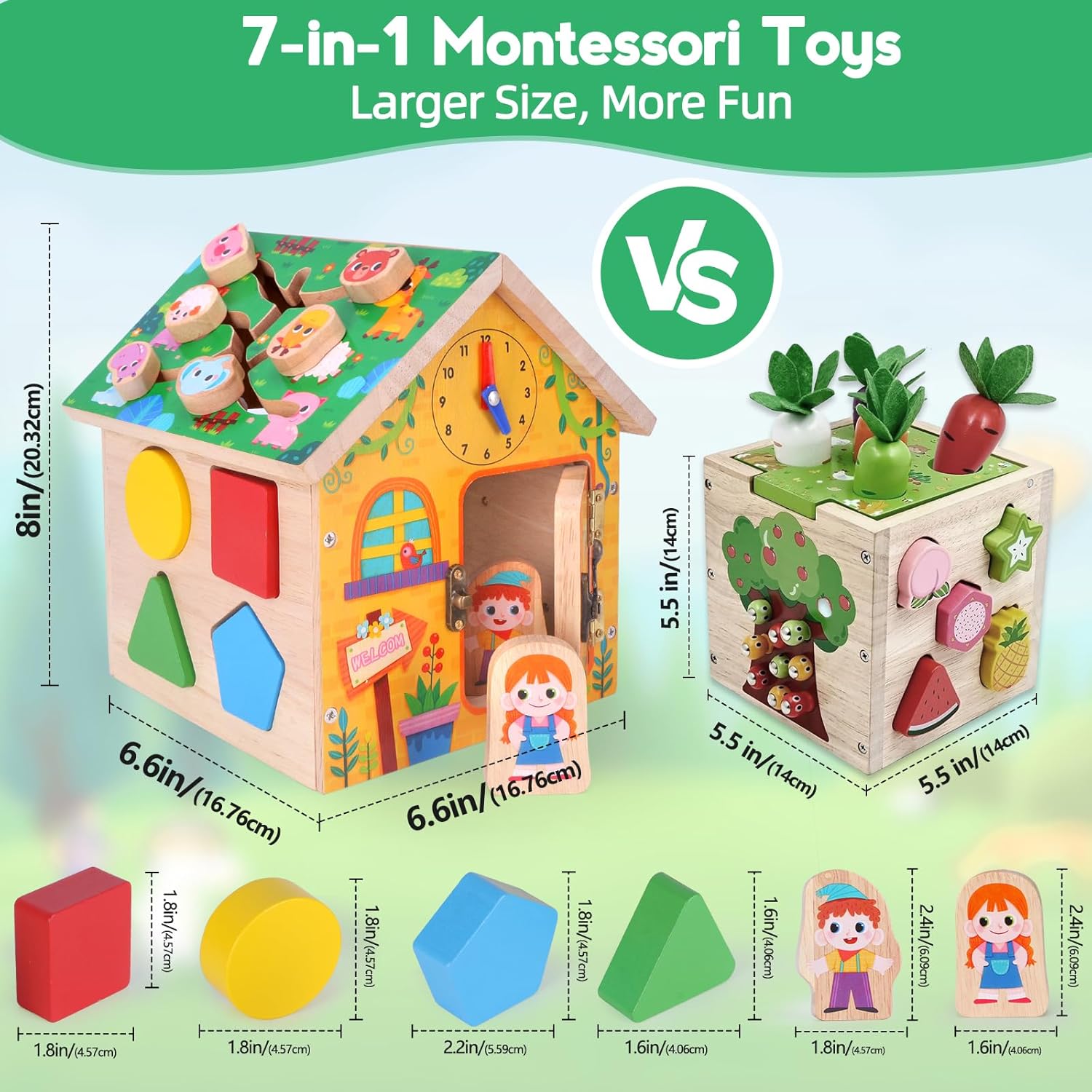 - 【Hervorragende 6 in 1 Motorikspielzeug für Baby】 Dieser Aktivitätswürfel hat 6 verschiedene Spielseiten mit 8 Spiele(inkl. 2 Holz Kleinkinder): Perlenlabyrinth, Babyxylophon, Lernuhr, Formensortierer, Abakus mit Perlen aus Holz, zahlen