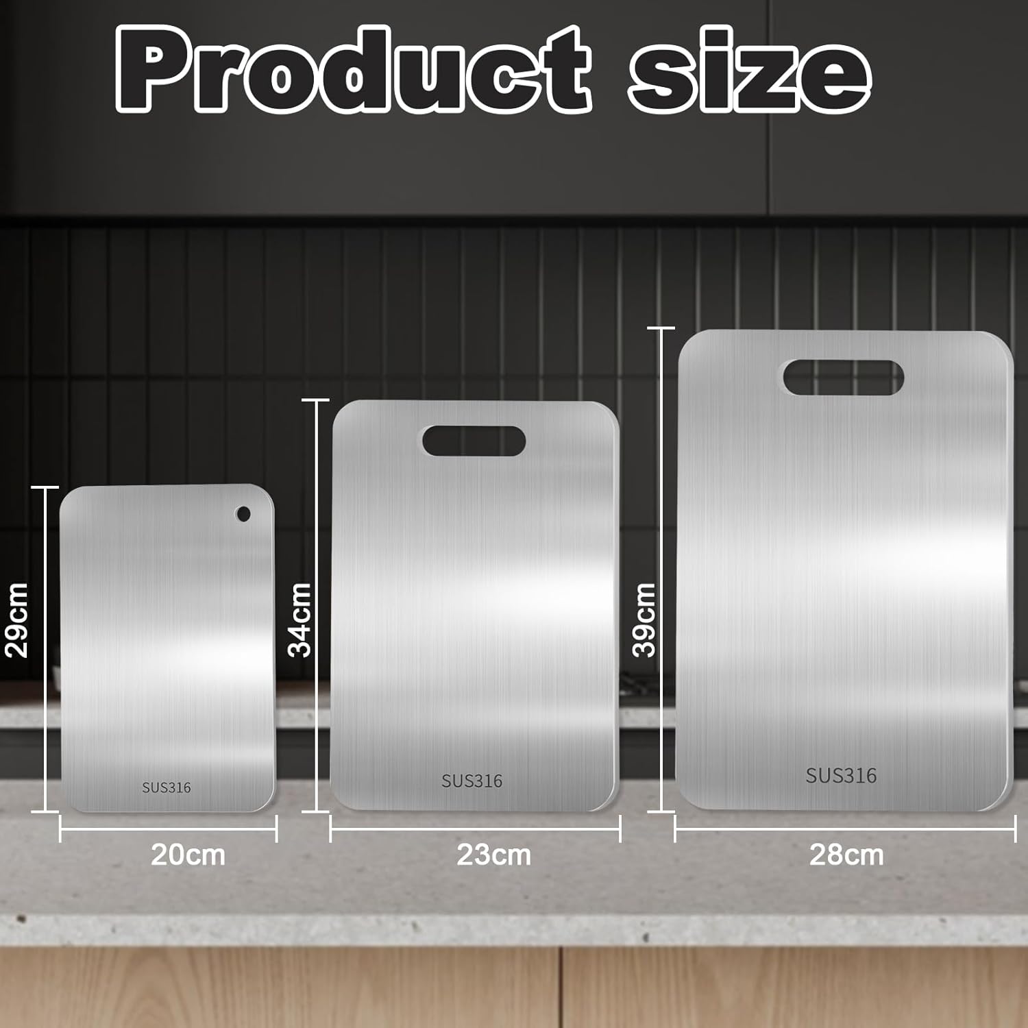 - 【3 Stück Titan Schneidebrett】- Unser Titan Schneidebrett ist medizinischem Titan gefertigt, was es zur sichersten Wahl in Ihrer Küche macht. Dieses titanschneidebrett ist langlebig und gleichermassen sicher für Ihre Gesundheit und Ihre Messer.