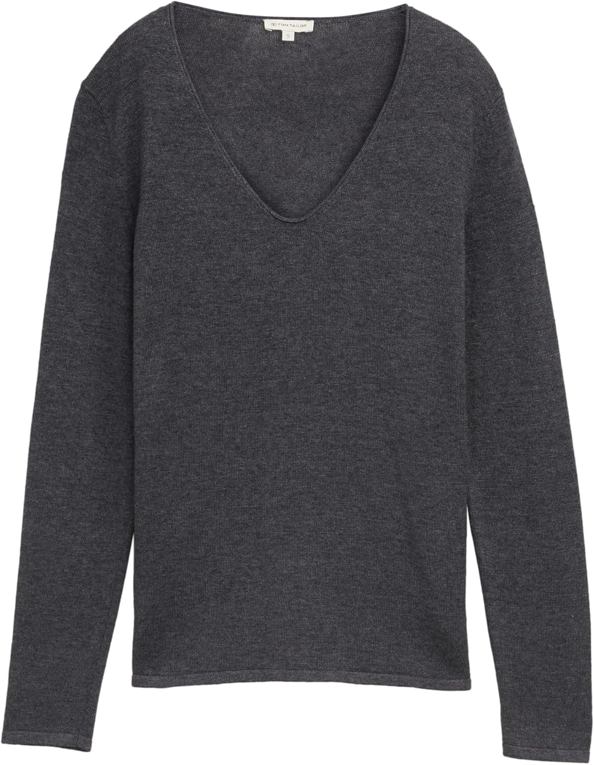 - Langärmliger, schlichter Pullover mit gerollten Saumkanten am V-Ausschnitt.