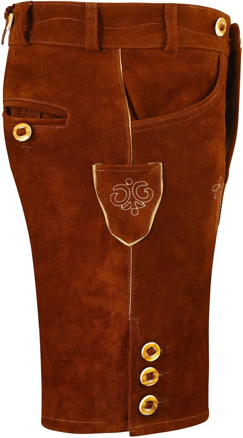 - Elegantes Design - Diese Herren Lederhose überzeugt durch eine sorgfältige und auffällige Stickerei. Das Material aus feinstem Rindsveloursleder ist sorgfältig verarbeitet und lässt keine Wünsche offen.