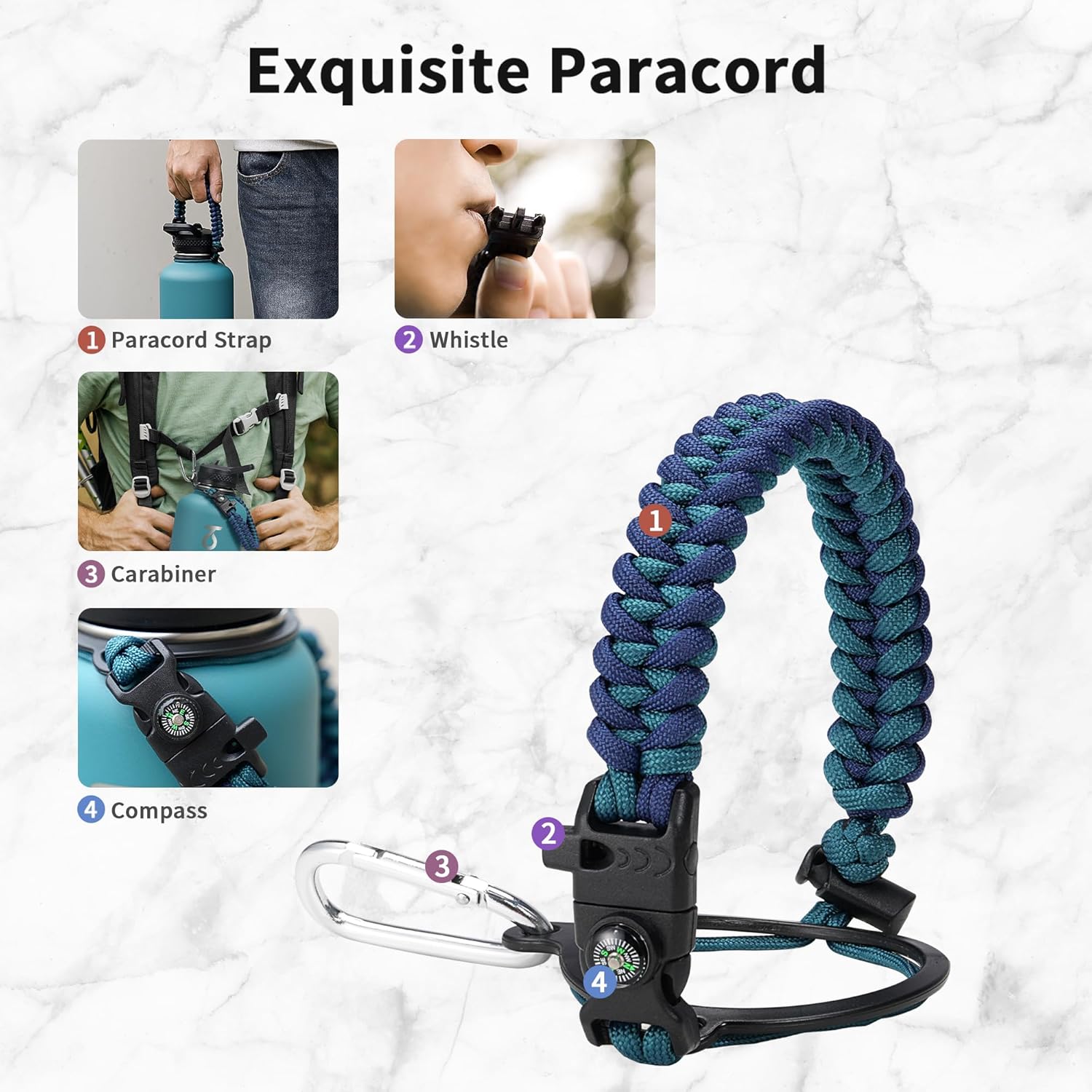 - Voll funktionsfähiger Paracord-Griff: Brillantes Paracord in passenden Farben bringt die Flasche mit einem Hauch jugendlicher Atmosphäre zur Geltung. Kompakter Kompass und praktischer Karabiner machen die Flasche zum idealen Survival-Kit für