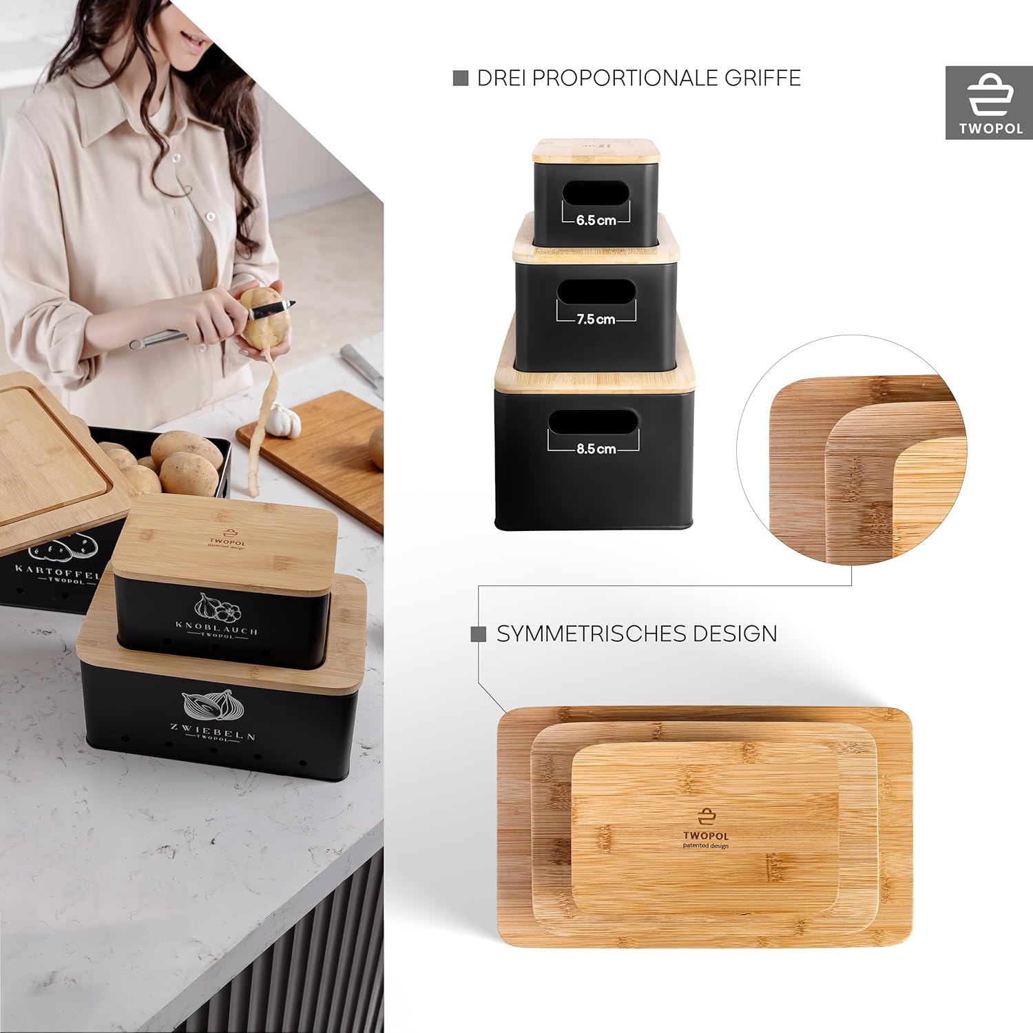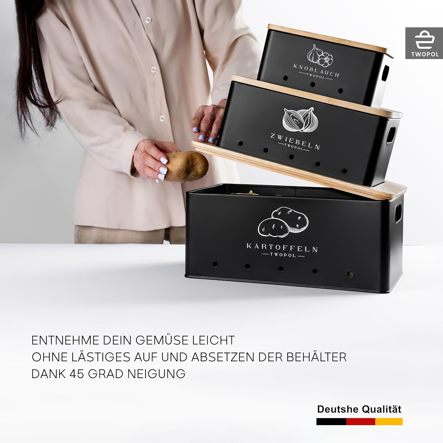 - KÜCHENORGENIZER & GEMÜSE AUFBWAHRUNG : die Vorratsdosen eignen sich perfekt zum Lagern von Kartoffeln, Zwiebeln und Knoblauch.Das Küchen Gadget ist stapelbar dank patentiertem anti-rutsch Design.